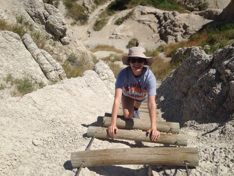 We then drove to the Badlands and it was awesome! Nothing like we’d ever seen before. The structures looked like sand dropping castles you make at the beach. We hiked two trails, one with a long ladder scaling a rock wall that we had to climb. I was terrified of rattlesnakes the whole time because I probably read at least ten warning signs.