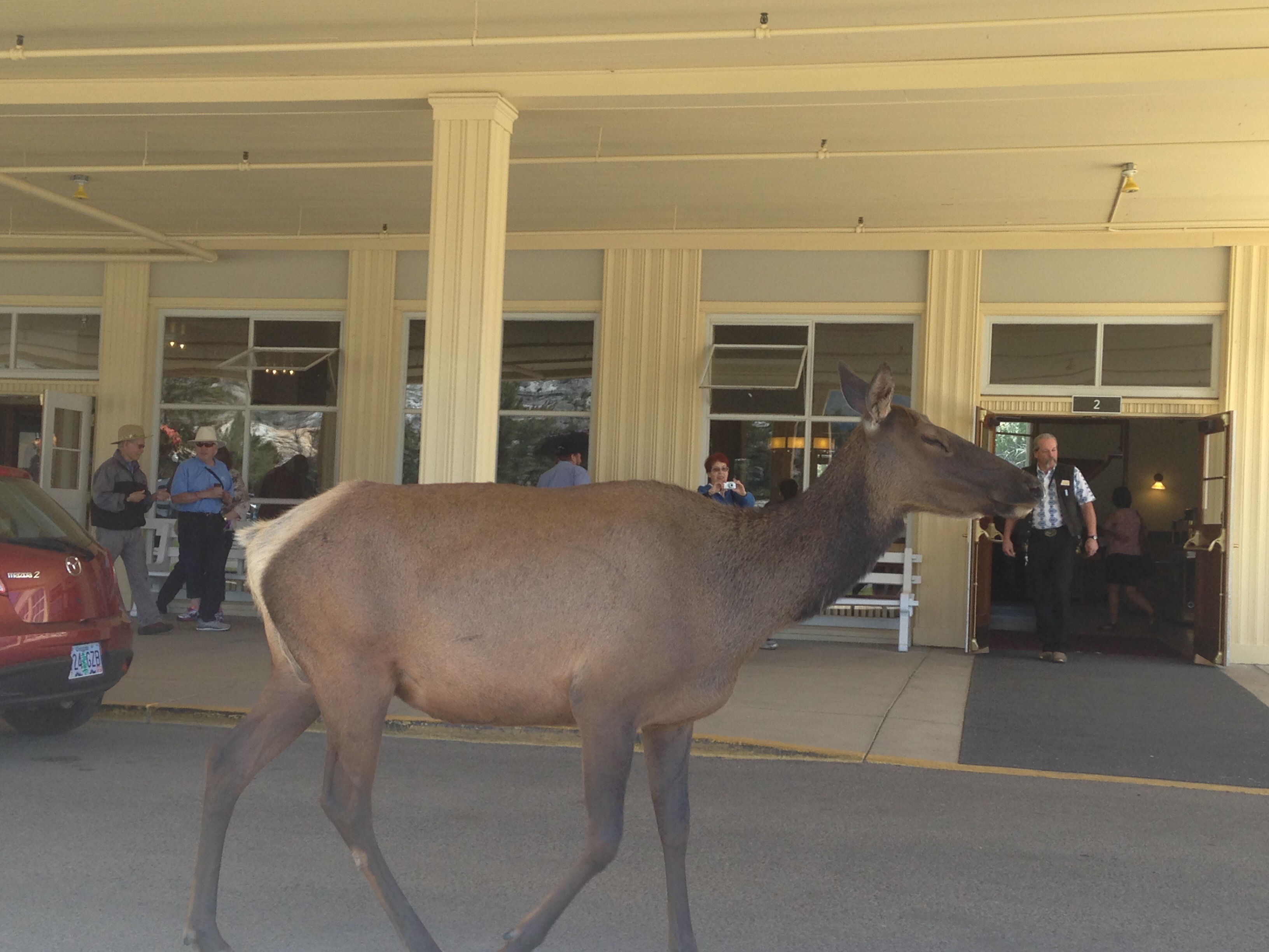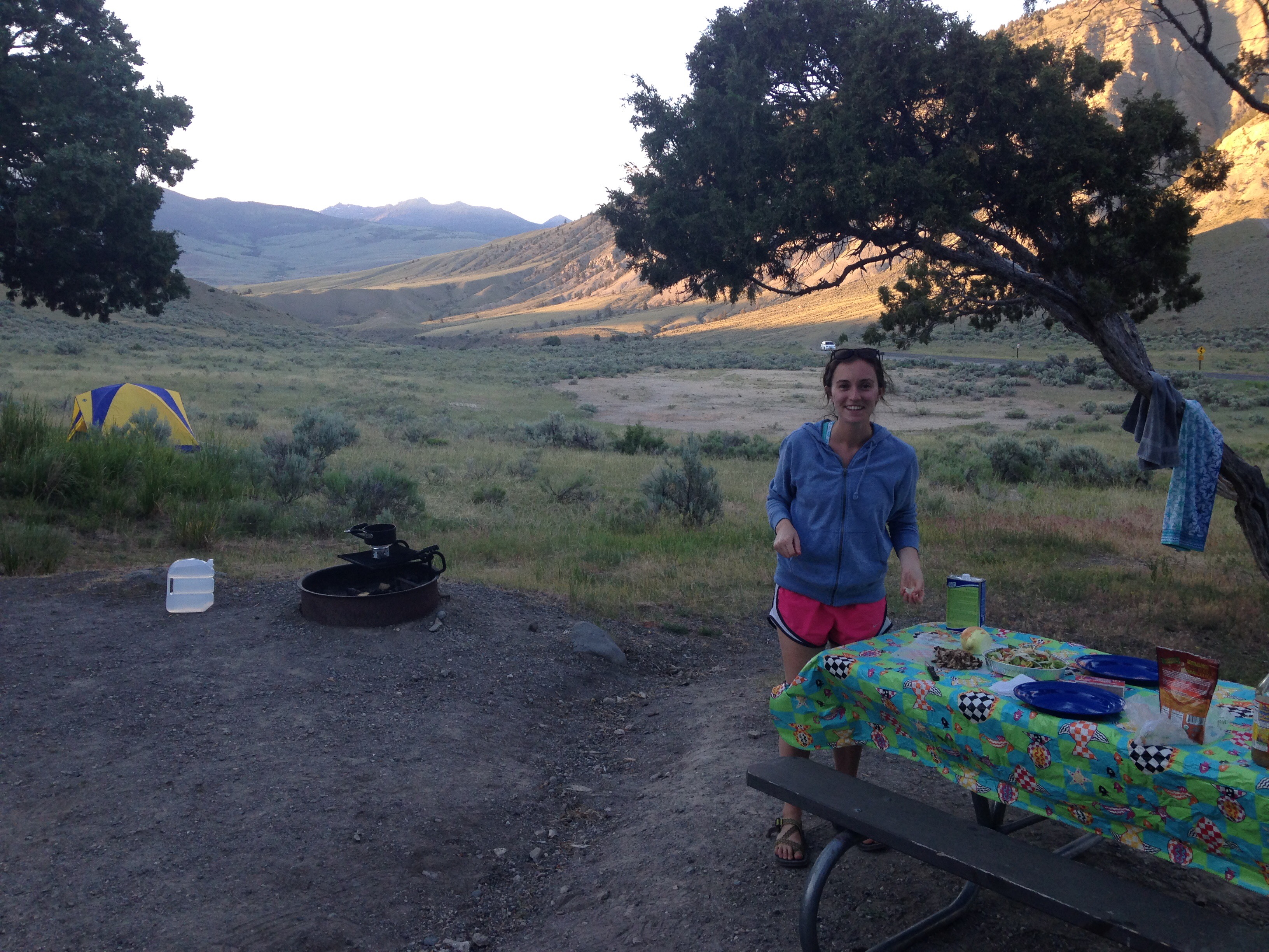 Actual Day 1: We stayed in Mammoth Hot Springs the second night, so we had to wake up early and drive over because the campground was first come-first serve. Thank goodness we did! The views were amazing and there were elk everywhere – in the campground, near the lodge, sitting on the grass. Just look how great this view is –