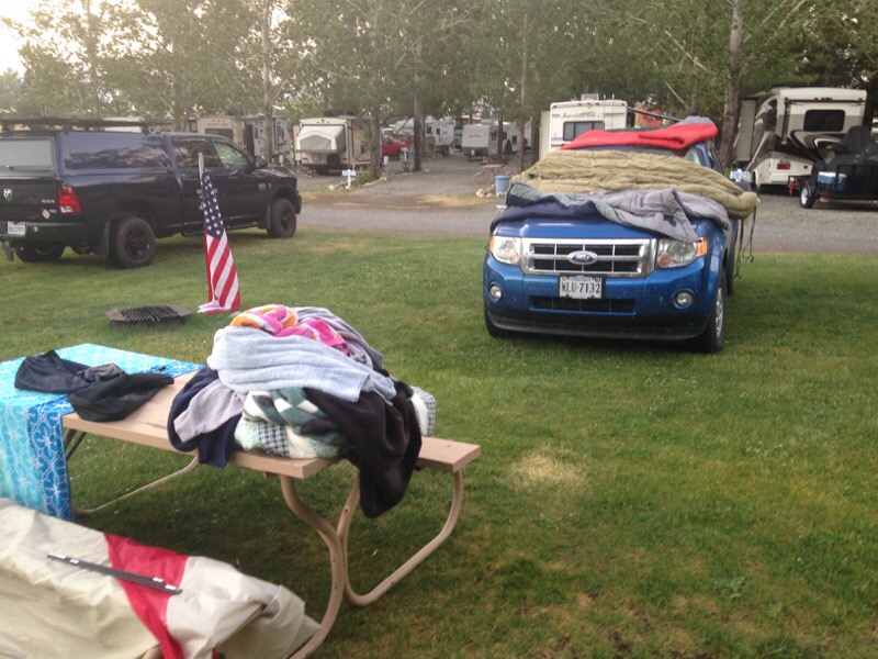 After wobbling back down to the car, we drove a few miles to Tenaya Lake. By that time, it was 5 and a little chilly for swimming. We ate a late lunch and lounged on the beach. I pitched my hammock for the first time, and in the process of doing so, upset a woodpecker in one of my post trees. It didn’t stop yapping for the whole time I was trying to nap,but I did get to see its “spouse” bring back some food and mouth feed it. #Natureiscool. After that, we packed up and headed back to the campsite, excited that we wouldn’t have to set up the tent for the first time on our trip. We were swamped and planned to be asleep by 8:30. Great to our surprise, there had been a thunderstorm and most of our stuff was either soaked or damp. We had to take everything out, put a bunch of stuff in the dryer, and hang the rest on the car. Took at least an hour or two and didn’t get to bed until about 11. It could have been worse though – at least we had a place to sleep!