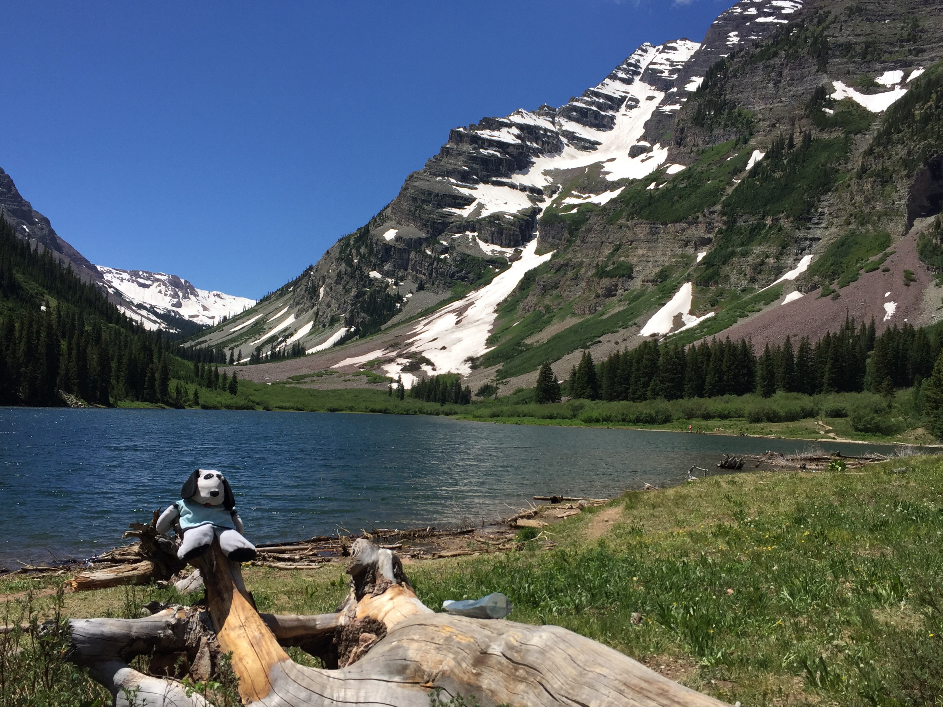 However, don’t think we cheated and walked straight up to the good view. We ended up doing a 3.2 mile round trip up to Crater Lake. This brought us closer to the peaks and to another alpine lake. We stopped and ate lunch on a stream bed with cold water running between our toes. We definitely want to return in the Fall at some point when all the aspen trees change to yellow and orange colors.