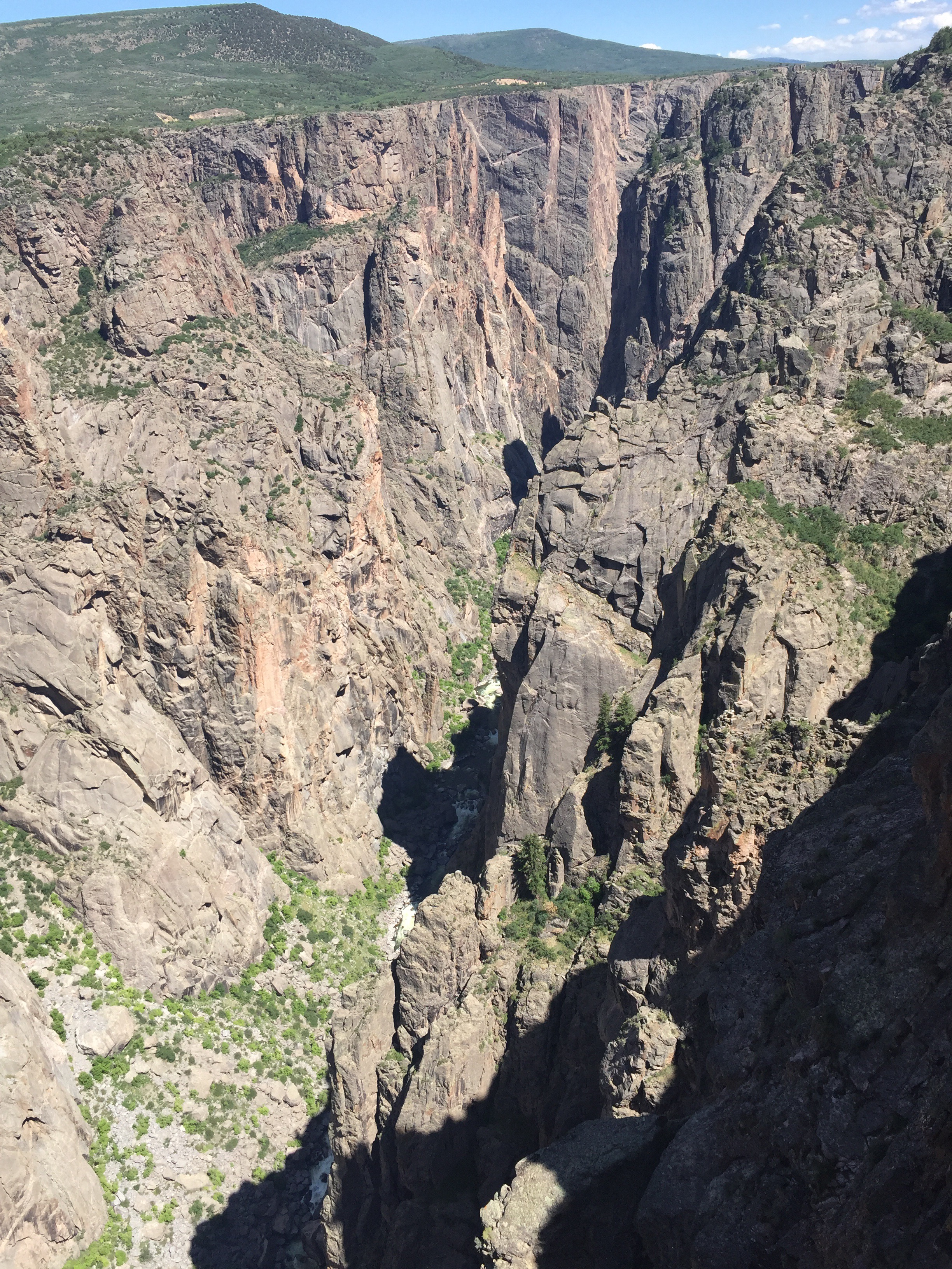 Black Canyon was very surreal to look at, but as we were on a time crunch, we only did the main overlooks. The history is cool – the canyon was formed from metamorphic rock and is continuing its descent into steepness as the Gunnison River eroded away the bedrock relentlessly. The canyon was a lot different from the Grand Canyon because it is steeper and the color is different. In the shadows, the canyon walls almost look black, hence Black Canyon. While we only had a few hours here, we felt like we saw the main points.