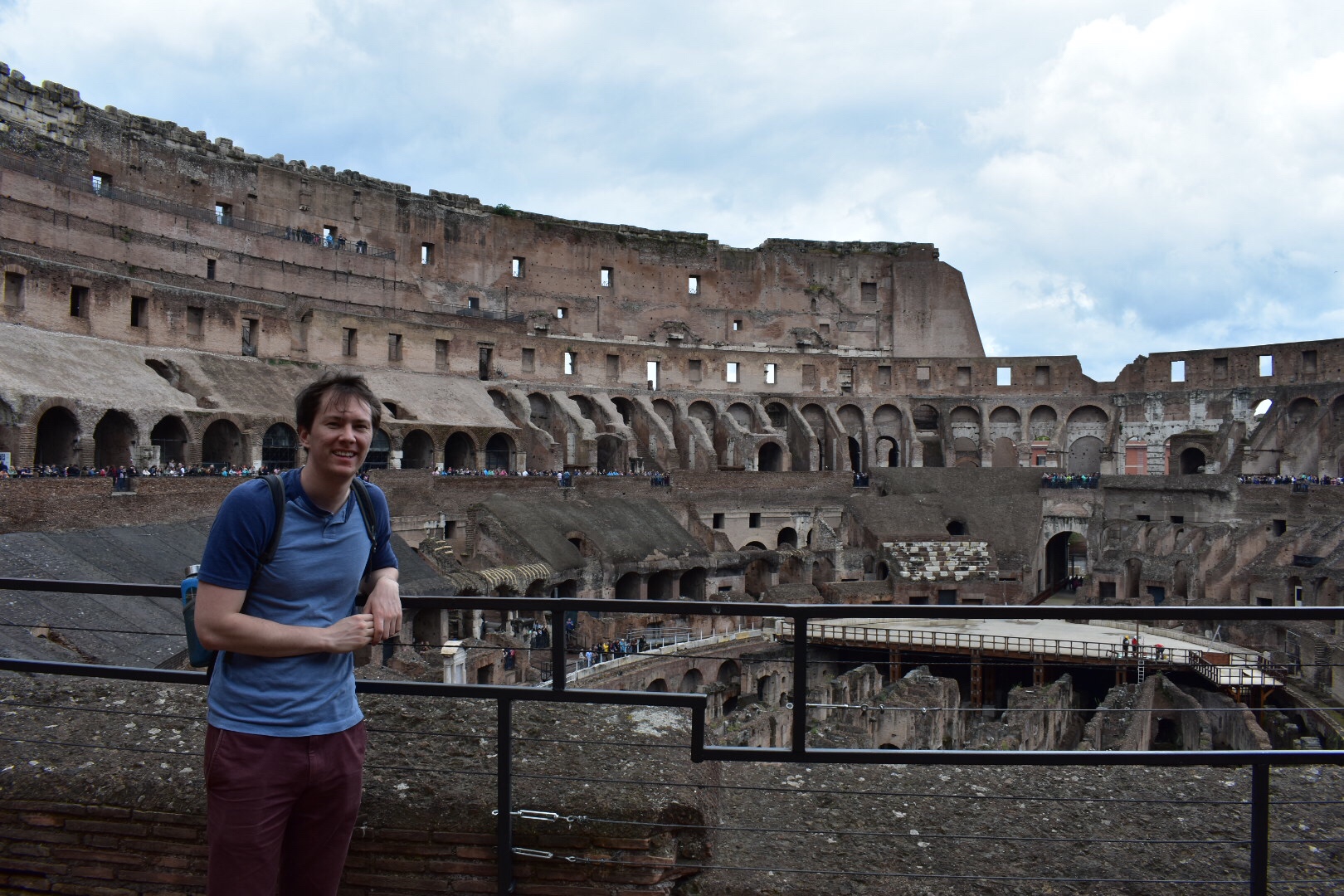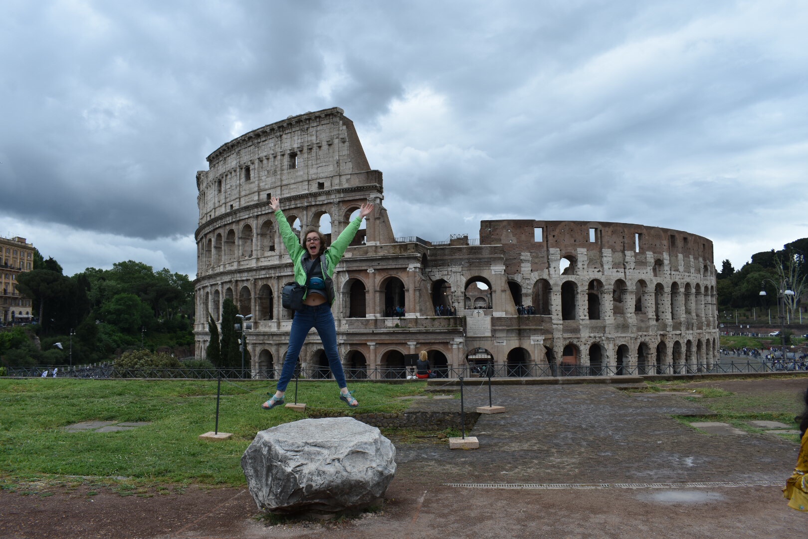 After the Church, we walked back to the metro, transferred lines (wow we’re pros), exited the metro and found ourselves standing right in front of the Coliseum. We bought tickets for a dainty 12 euros and walked inside the 2,000 year old Roman amphitheater. There are two levels available for walking and multiple plaques with varying fun, and gruesome, facts about the games that once took place inside those walls. Men, mostly slaves but some idiotic individuals looking for fame, would emerge from the tunnels beneath the Coliseum to fight each other to the death, or worse, fight defenseless against imported wild animals. It was customary in those times for people to spectate and watch people be ripped apart for pure entertainment – glad I wasn’t around back then.