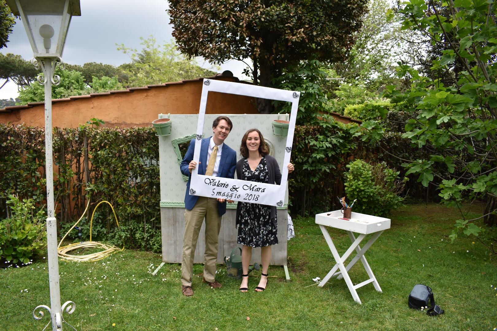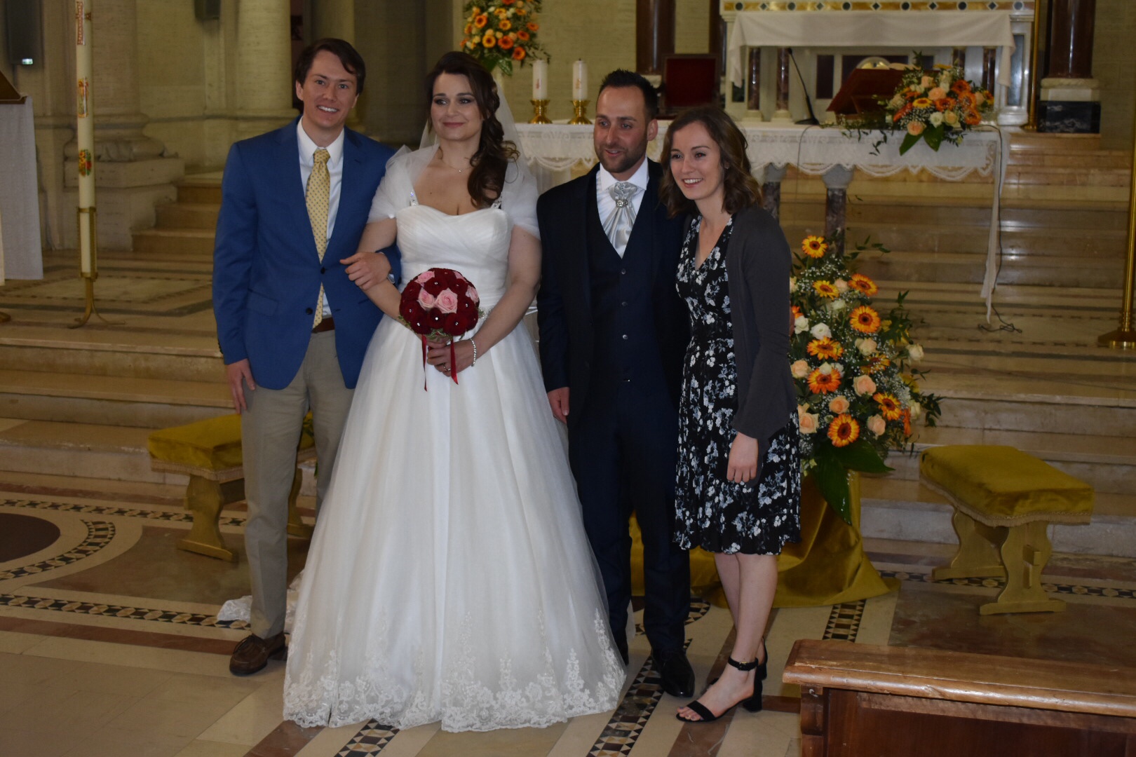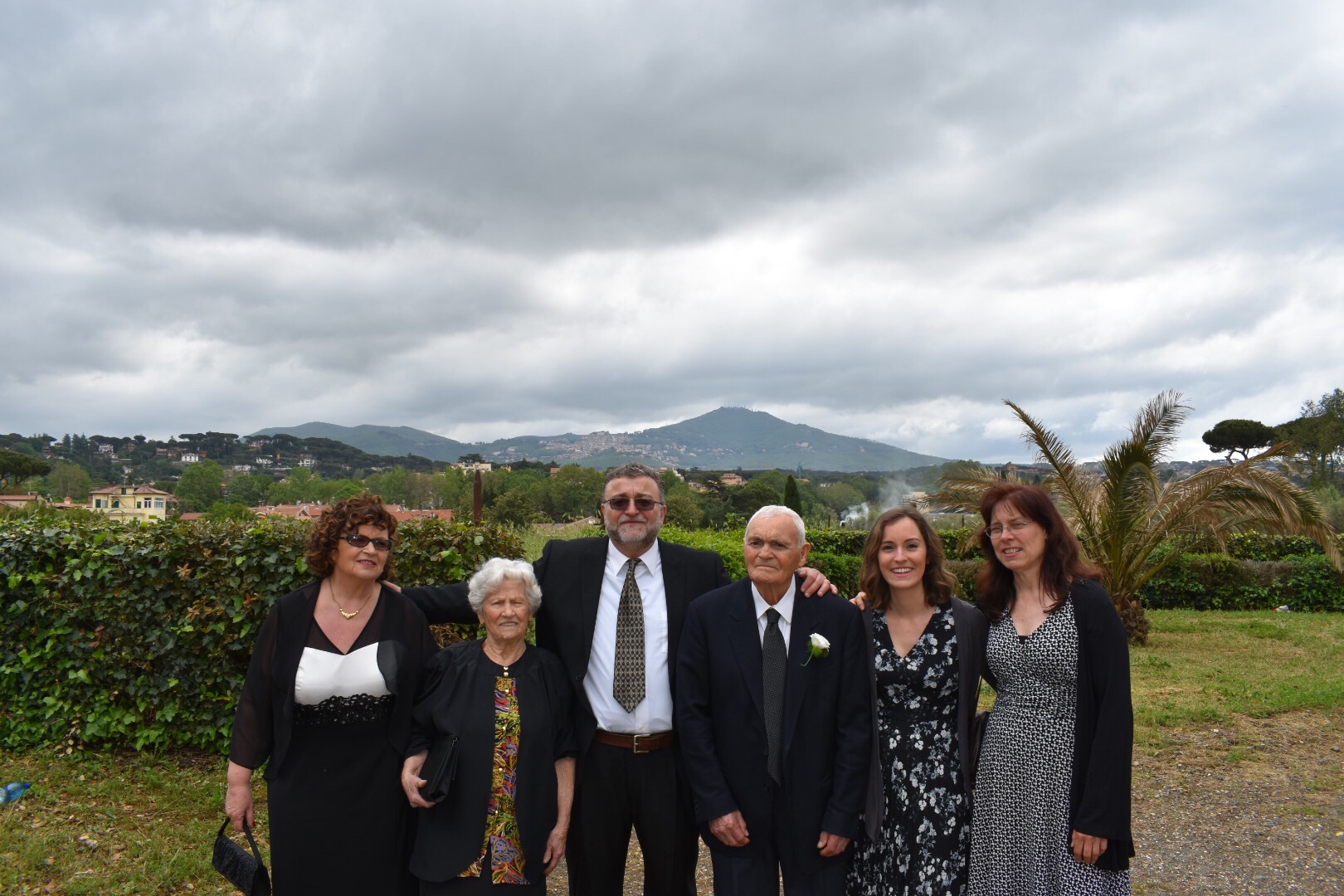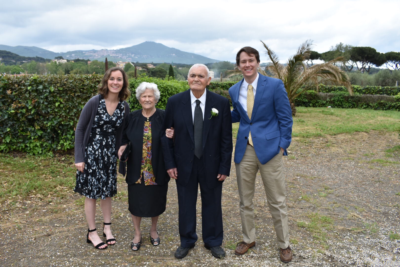 Saturday – wedding day. The wedding was in an absolutely beautiful church, outside of Rome in the countryside on a town called Grottoferrata. The wedding was early in the morning, which was different than any American wedding I’ve been to. By 1PM, we were at the restaurant. Let me explain how an Italian wedding works as I now know – you eat course after course for about five to six hours. When we got there, there was a beautiful spread of aperitivos, which are the appetizers commonly eaten before the main meal. There was a whole prosciutto and a whole wheel of pecorino cheese – I was in heaven. We missed the memo because we thought that was the entire meal, so we each had about 4-5 small plates before being told this was just the beginning – there were three other main courses then dessert! The venue was absolutely stunning. It was in a backyard of this old Italian building with vines running up and down the sides, and a view of Rome below. After the appetizers, we moved inside for the later courses. There was seafood pasta, layered pasta with ricotta, pistachios and honey, and lastly a hearty piece of steak with roasted potatoes and an arugula salad (I wish they served that first!). Even though the food was spaced out, that was one of the bigger food babies we ever had. To top it off, there was a dessert bar with the wedding cake, cheesecakes, fruits and other tortes. It was definitely the most beautiful and tasty wedding we’ve been to!