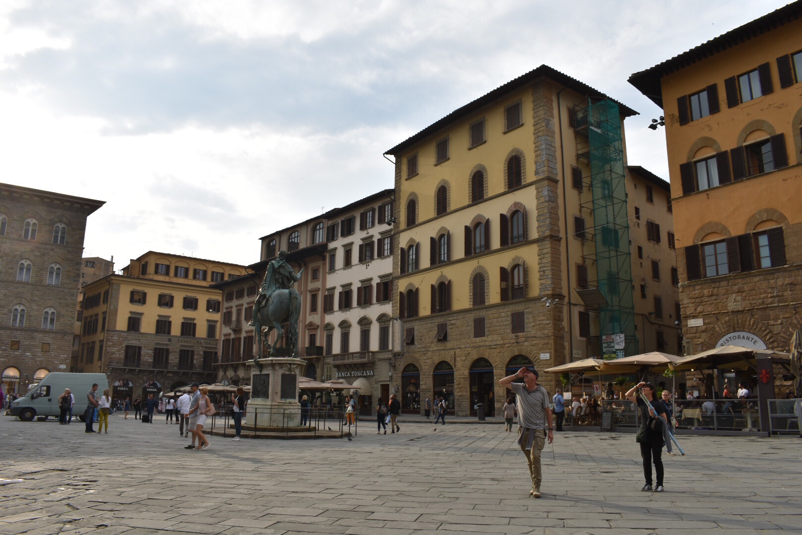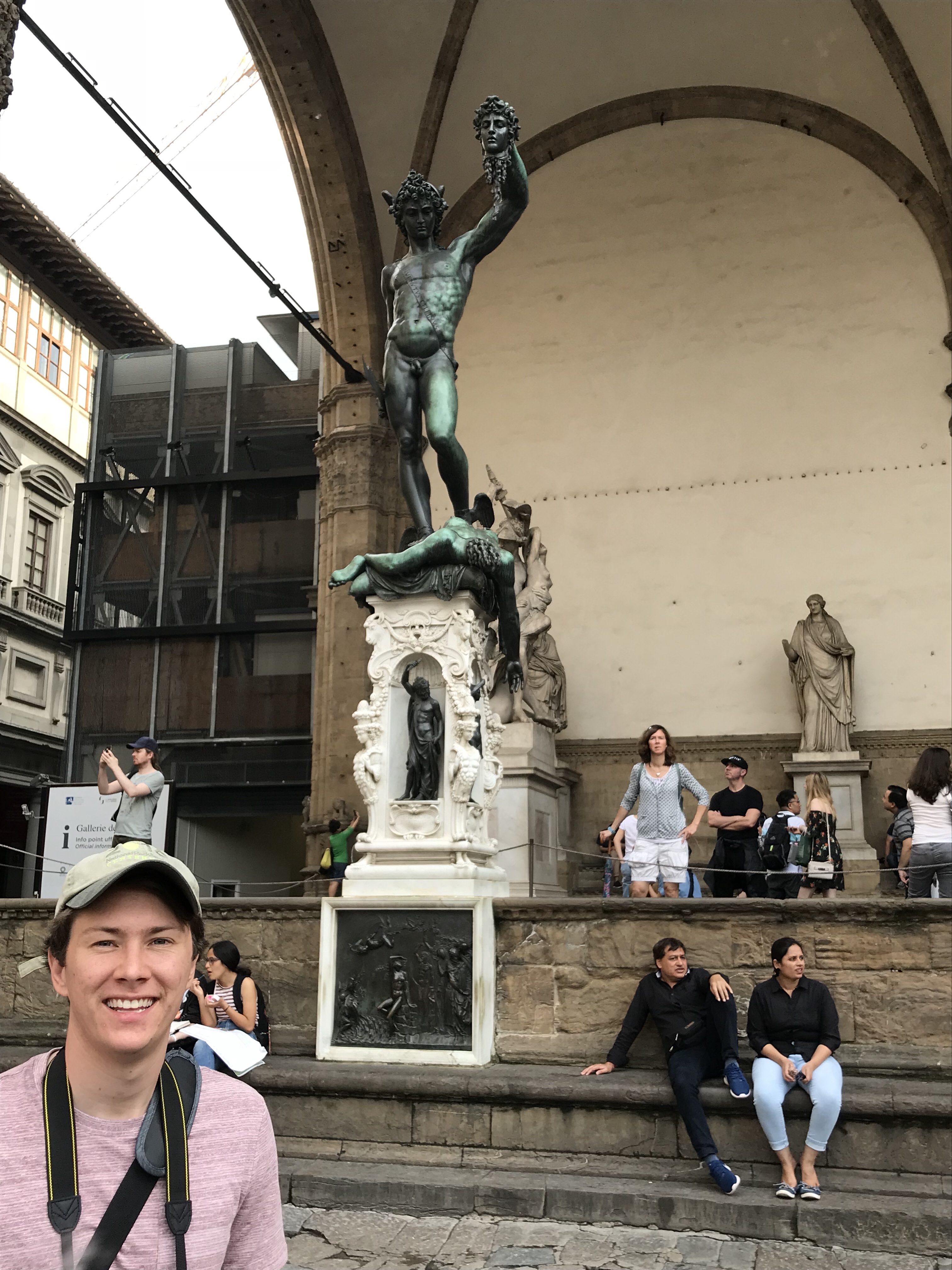 Walking from there, we kind of just wandered around the city because what’s better than getting lost in a beautiful city, right? Looking at the buildings and pastry shops and trattorias was exciting enough. After a bit of walking around, we made it to the Piazza della Signoria with fake David. I tried to convince Jared the statue in the square was the real David, but he didn’t buy it. For those that don’t know, David is the statue carved from marble by the great Michelangelo, claimed to be the perfect formed body of man. Unfortunately, the real statue is held at La Accademia, and we didn’t have enough time to see it this time. I’ve seen it on past visits though and I can attest that he is massive. Crazy that someone could carve something so perfect from a chunk of marble. If you look at the second picture down, you can see “fake” David.