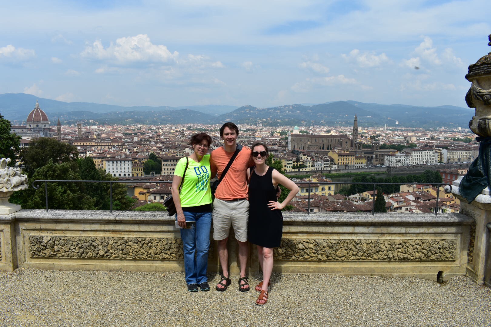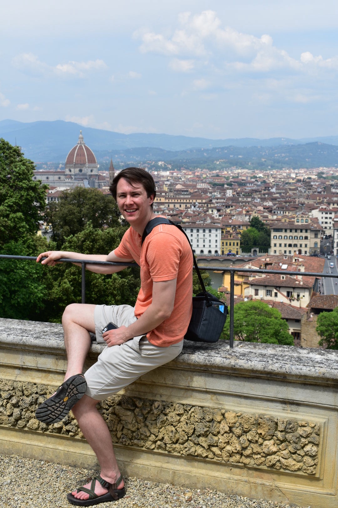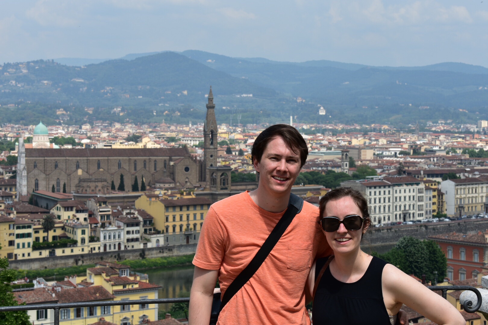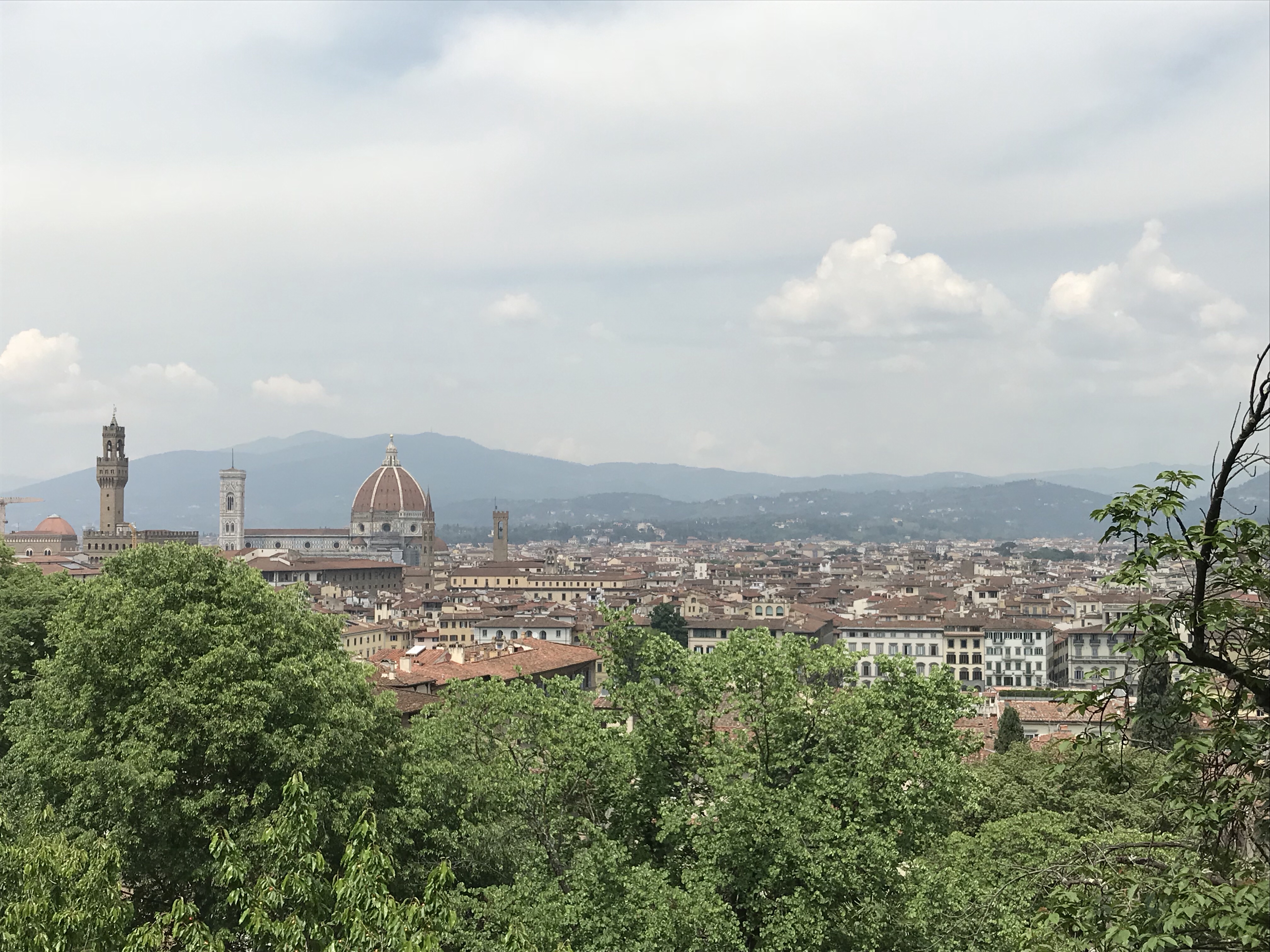 Unfortunately, since we only had two days to explore, it was a bit of a rush to see the highlights. We arrived in Florence mid-afternoon on Monday and parked our rental car about two kilometers from Ponte Vecchio, giving us plenty of time to walk and admire the city. No closer than 200 meters from our car was a Sorbeteria, selling the best frozen treat I’d ever tasted, and I’ve tasted a lot of gelato and sorbet. I got two scoops, one of lemon sage and the other wild strawberries. It was so good I almost couldn’t share with Jared.
