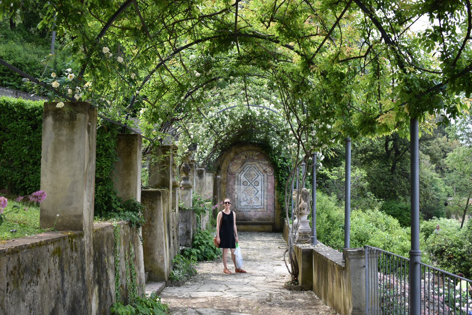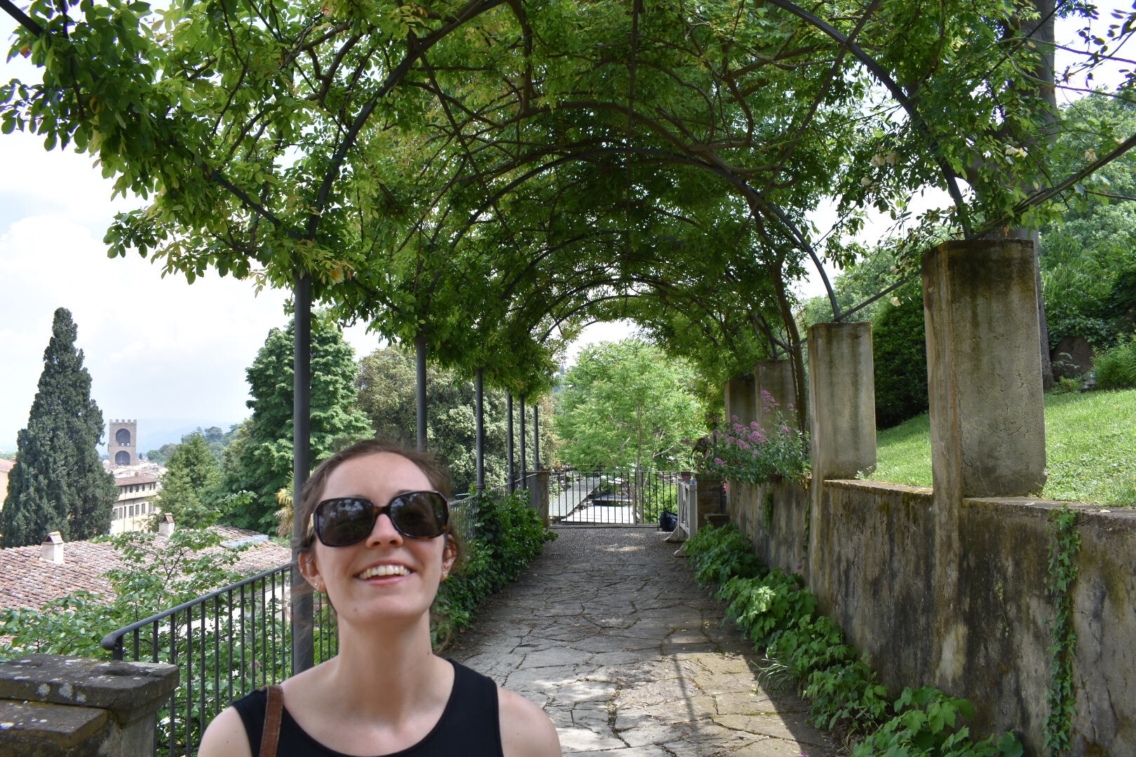 The next and last morning, we woke up, packed up the car again, made the winding drive through the city and ended up in Florence for breakfast. After eating some pastries and walking around Ponte Vecchio again, and buying an expensive (but priceless) leather jacket, we found ourselves at the Bardini Gardens. Recently restored and opened to the public, the gardens provided an amazing aerial view of the city. You had to work for it though. We wound up the path, passing rose gardens, statues and a tunnel covered with grape vines. Albeit a cloudy day, we had a perfect view of the city below. After marveling in awe at the view, we began to wind our way down as we wanted to stop in Siena before going to the hotel airport.