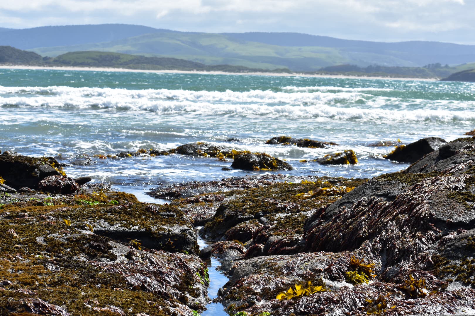 After a restless night's sleep due to the excessive amount of wind, we woke up sleepy and ready for a new day. On today's plate, we continued to explore the Catlins. Firstly, we headed to Slope Point, the southernmost tip of New Zealand. At that point, we were closer to the South Pole than we were to the Equator! There are only a few other places in the works that can boast that and we will probably never be that far south in our lives again, so pretty cool! The downside was that it was super windy and I might have lost Jared’s hat to the wind (sorry Jared). We also had to walk through a field of, you guessed it, MORE SHEEP, so that was pretty cool.