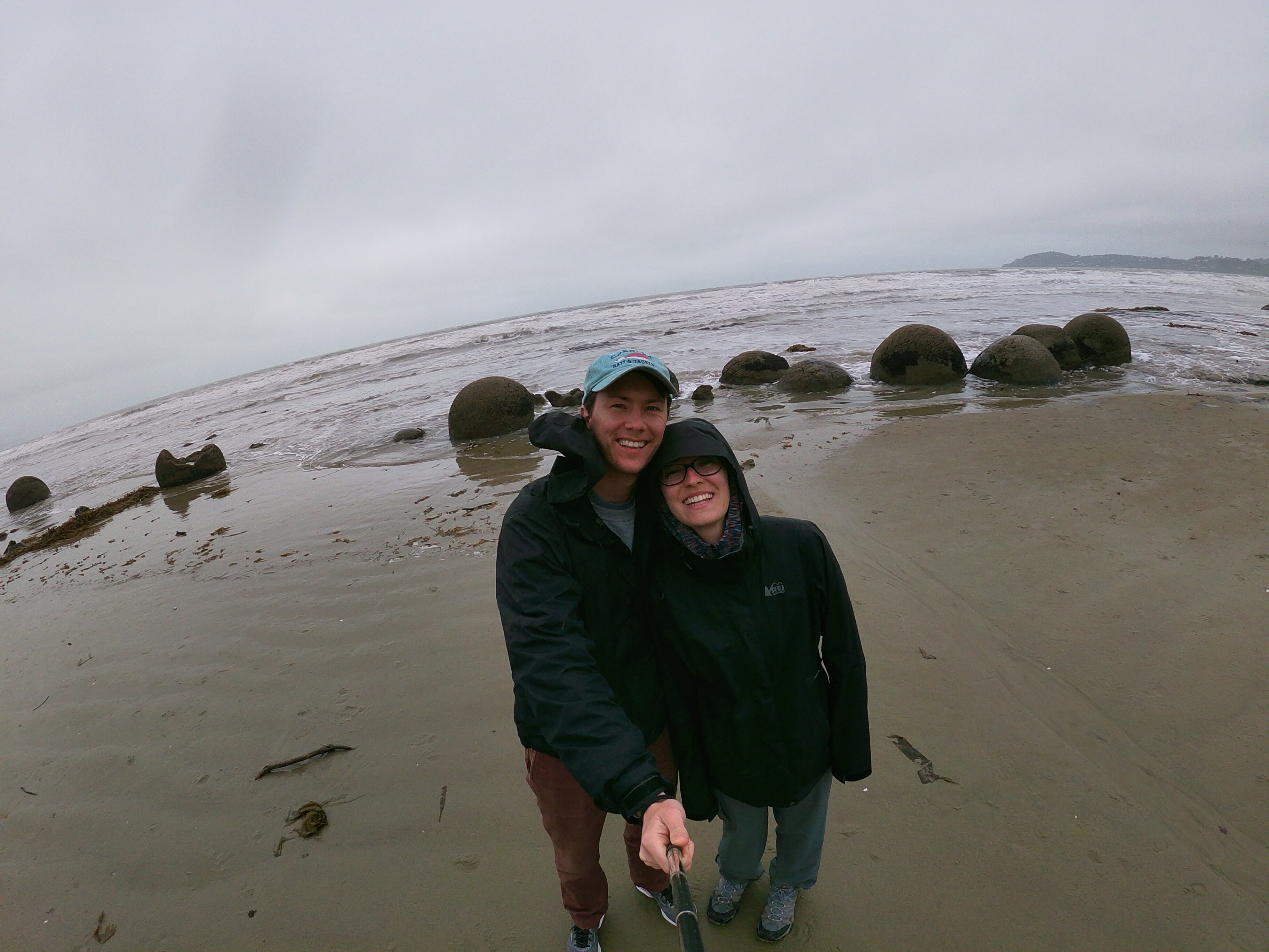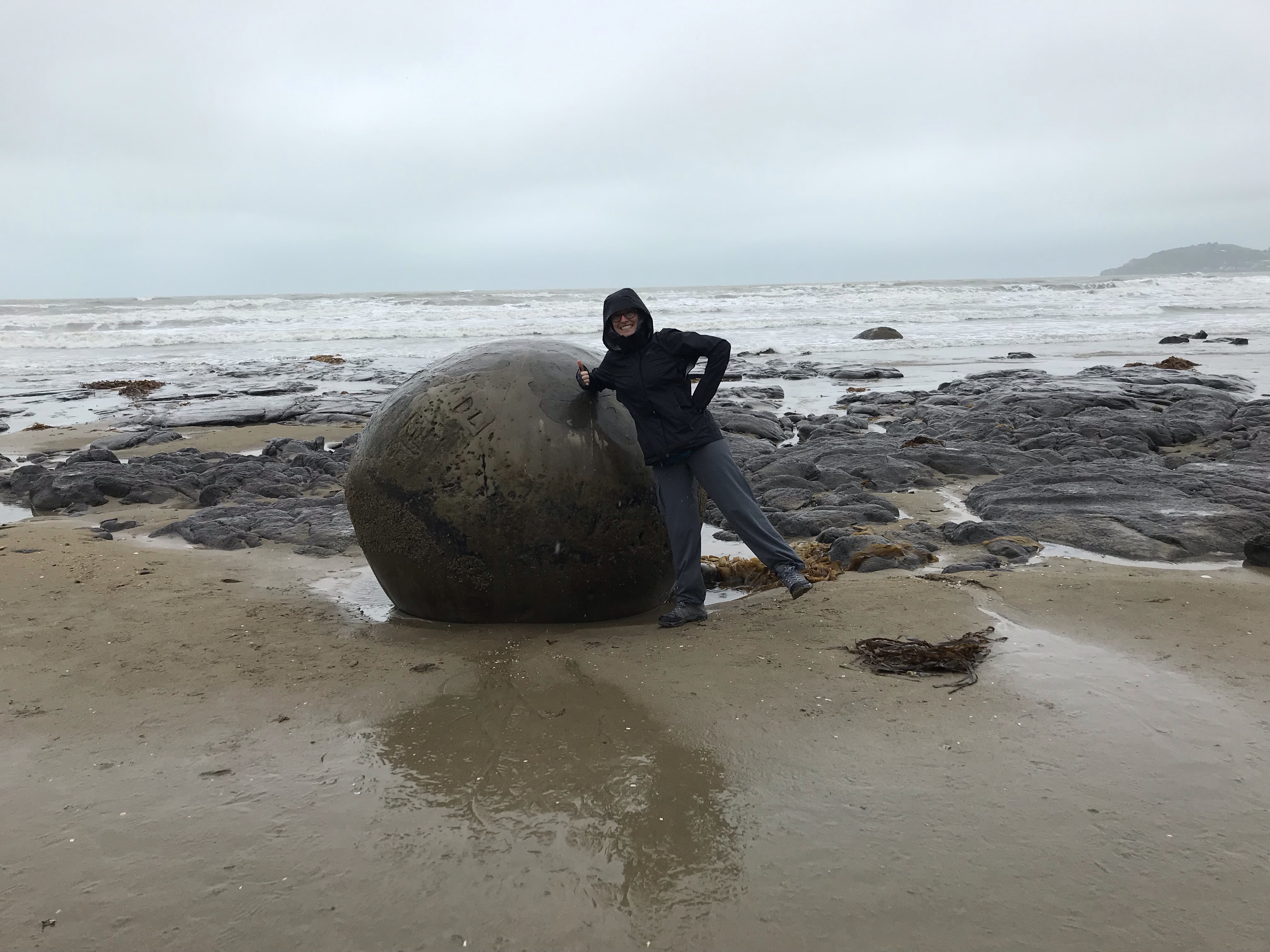 Before getting to Dunedin, we stopped at a rather touristy spot called the Moeraki Boulders. Along the beach coast, there are these spherical rocks in literally perfect symmetry. Nowhere else in earth 🌍 supposedly is there another phenomenon like this. The weather still wasn’t great (misty and cold) but it was definitely worth the stop.