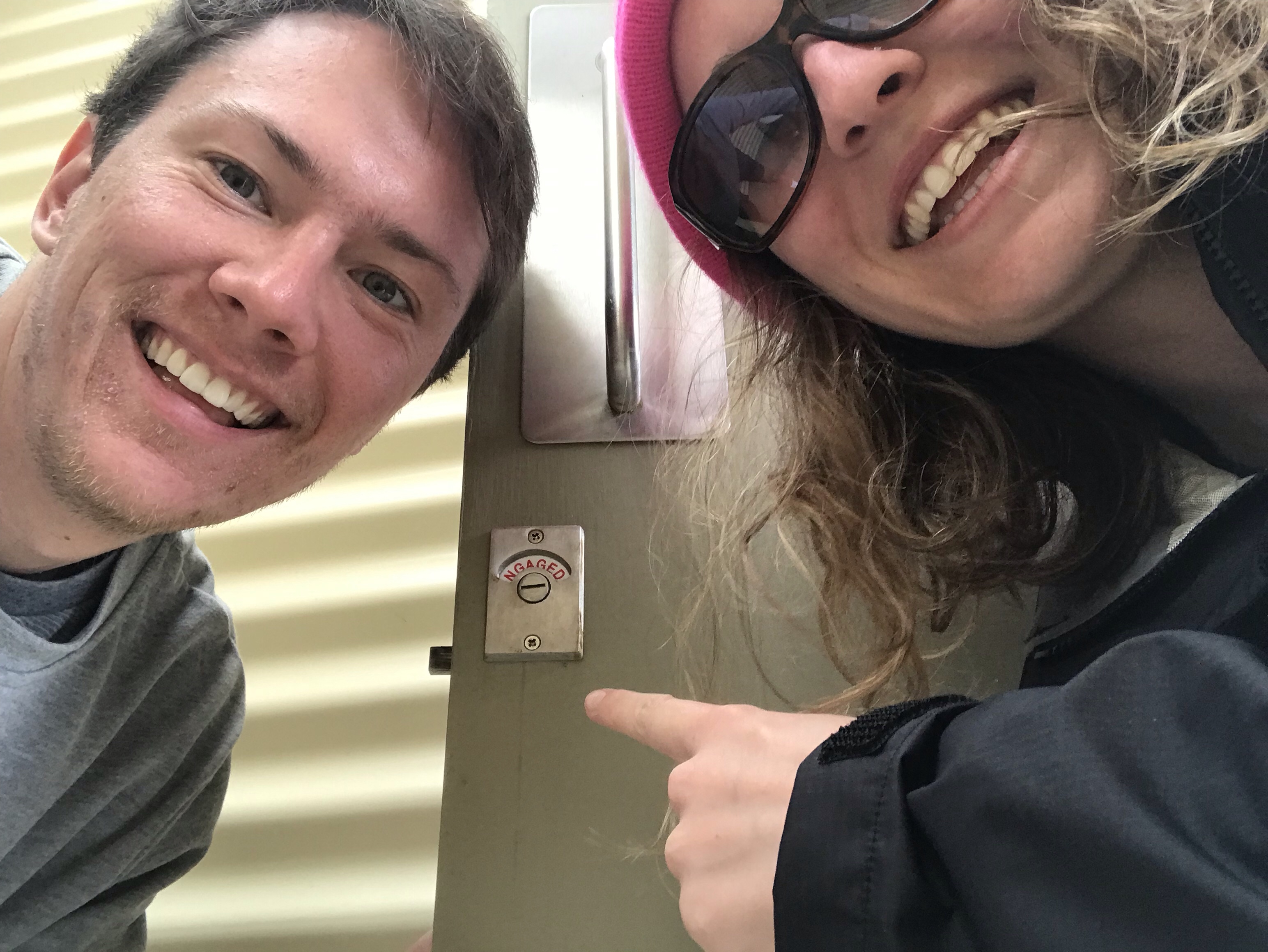 pictured below: instead of trailhead bathrooms saying “occupied”, they say “engaged”!