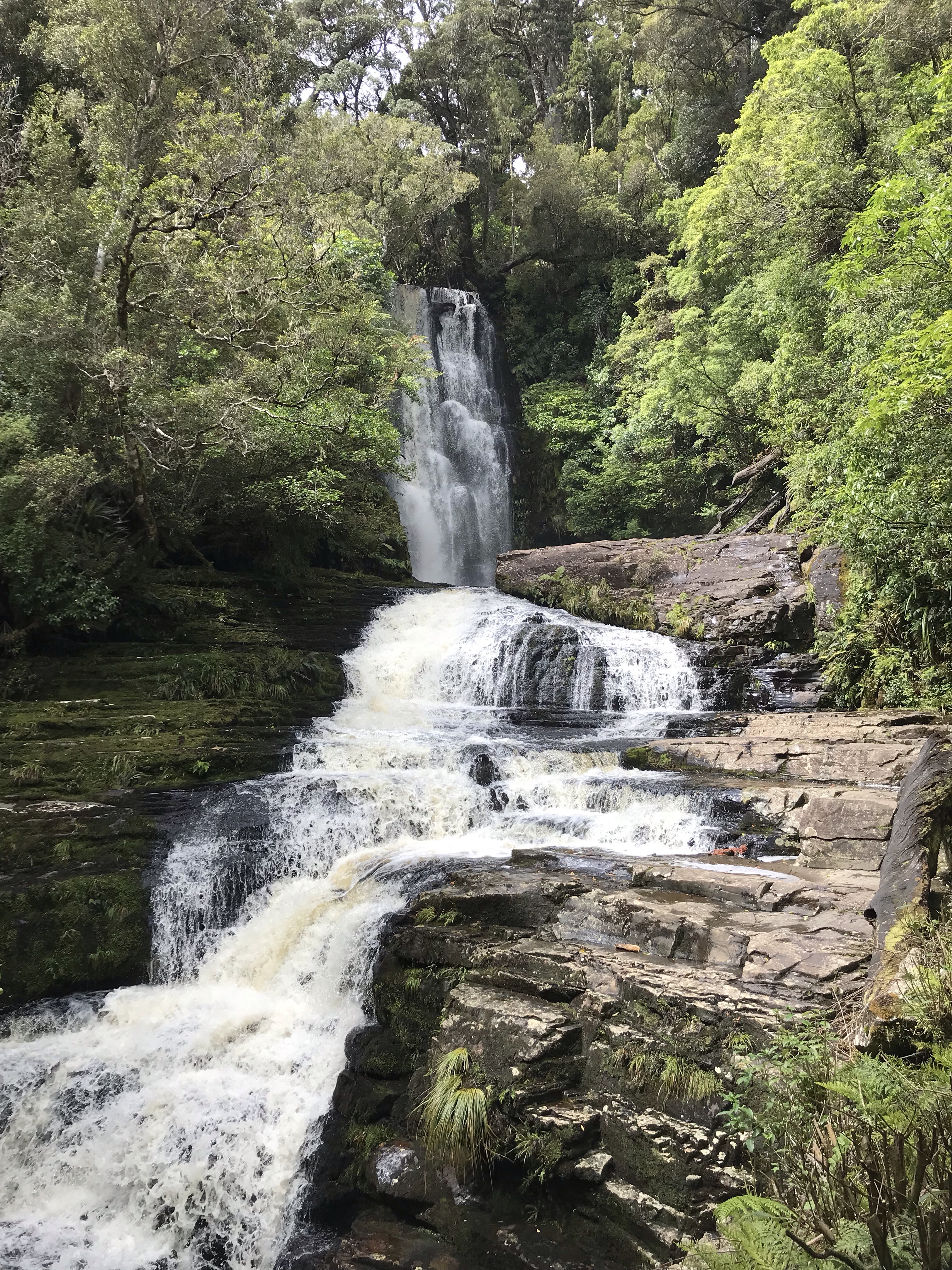 king down the campsite, we headed towards the Waipohatu Loop Walk, a three hour round trip hike through the lush bush of the Catlins. The trail followed a stream through the bush before leading to two waterfalls. We only made it to one of the waterfalls and honestly it wasn’t super impressive. I’d recommend the Mcclean Falls walk for the waterfall view, but the hike itself was nice.