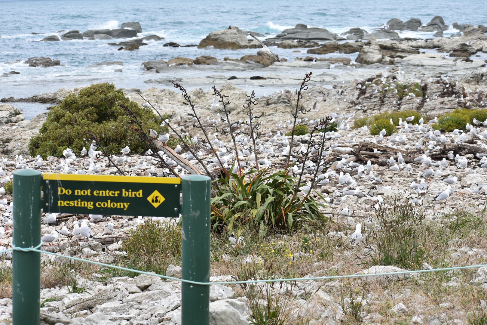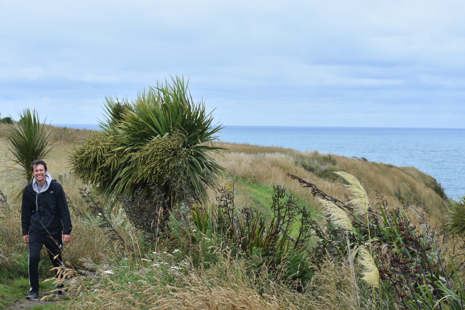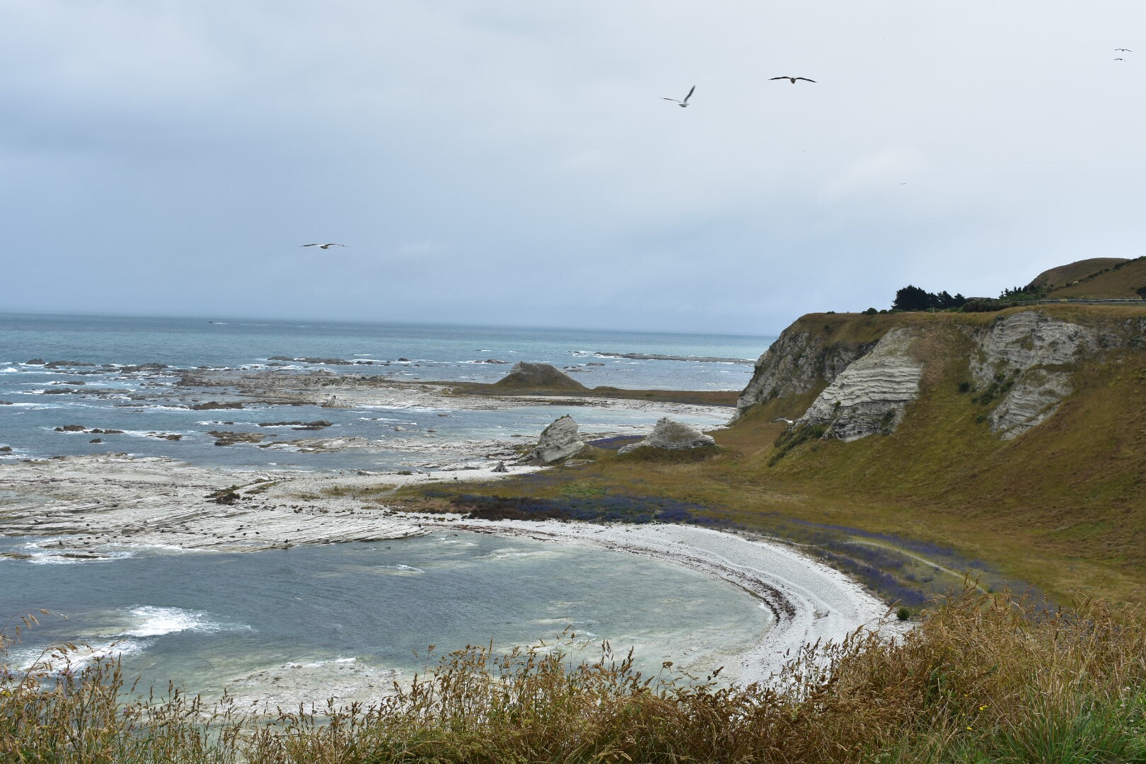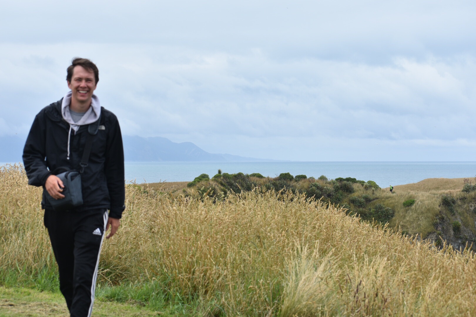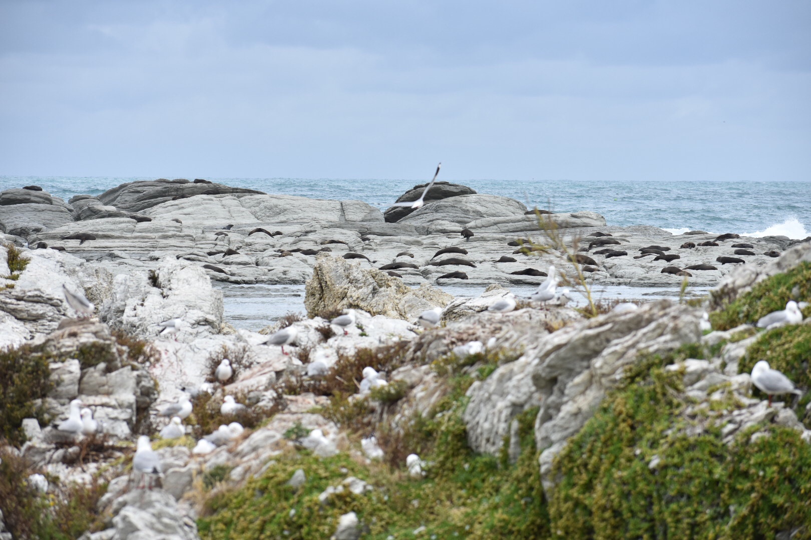 Waking up the next day, the clouds were a little clearer. It didn’t really rain that day but there was a constant overcast. One of the things we decided to do was the recommended Peninsula Walkway, a coastal walk to view the town’s resident seal colony. The walk diverged into two paths, and we walked a little of both. The first ascended up the coast and provided an aerial view of Kaikoura along the cliff walk.