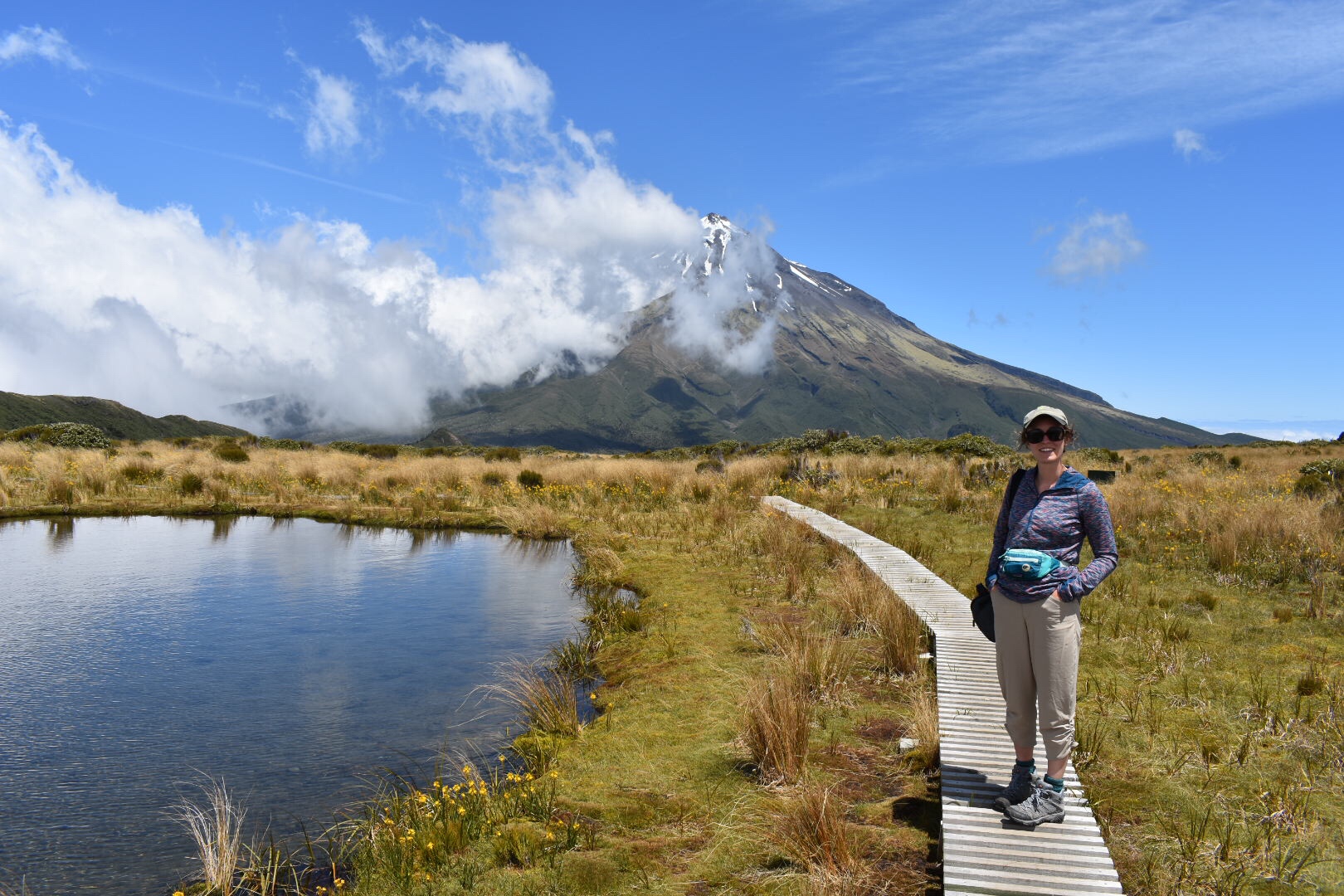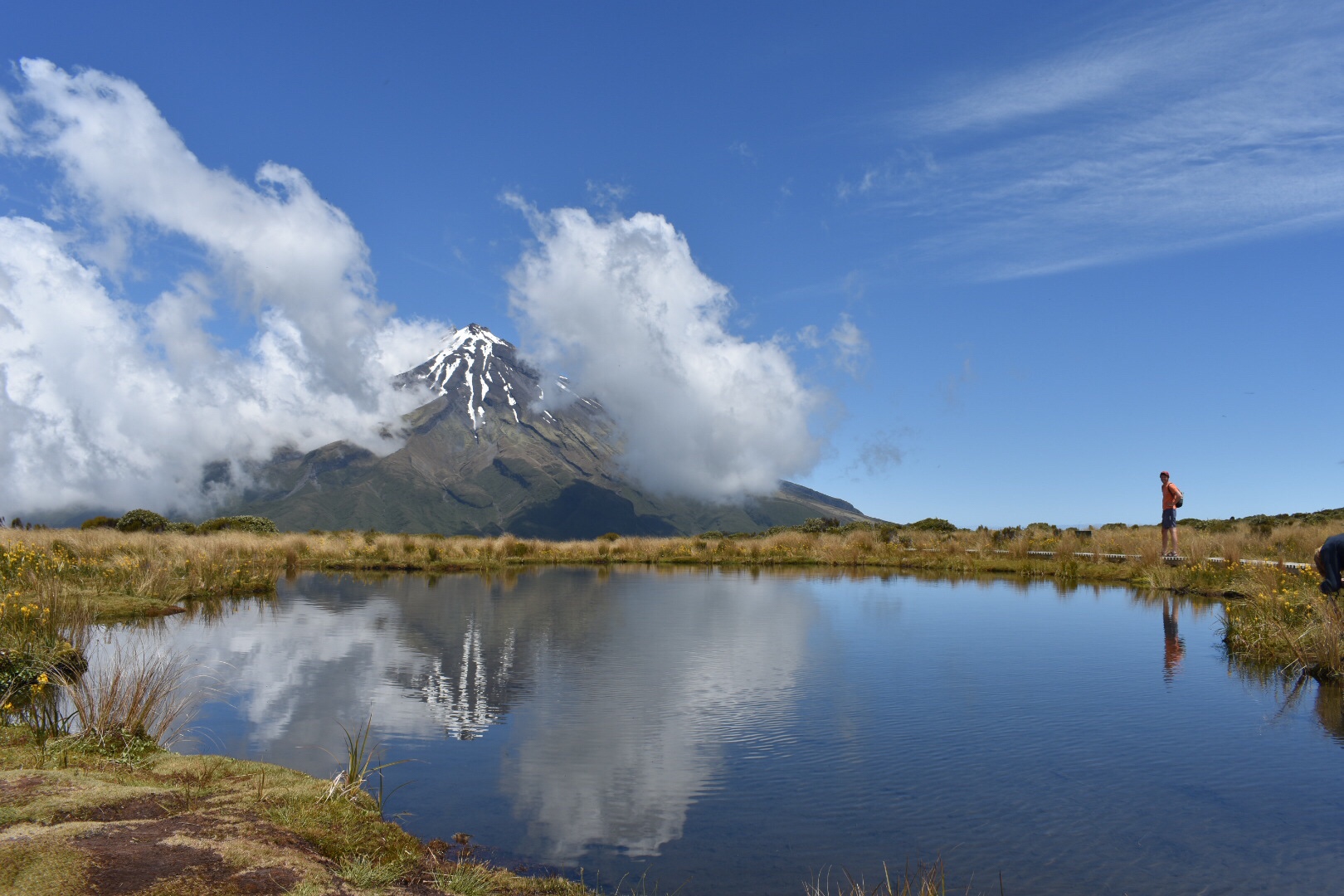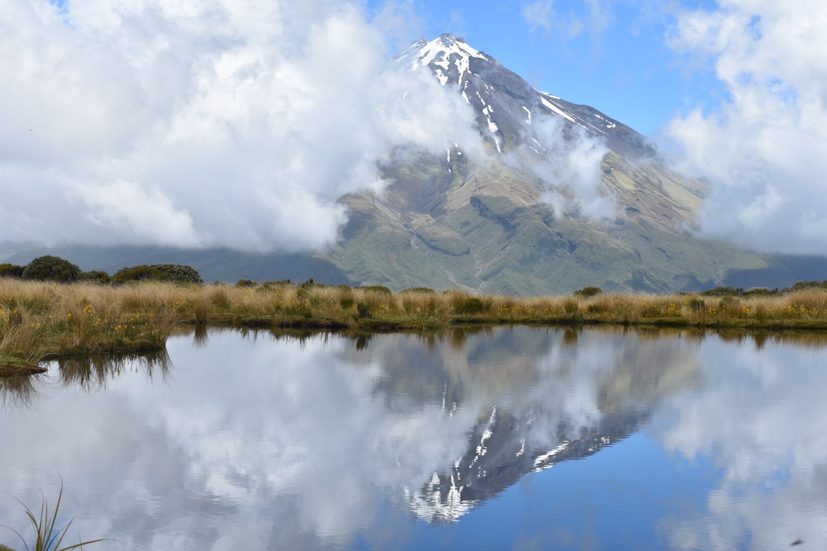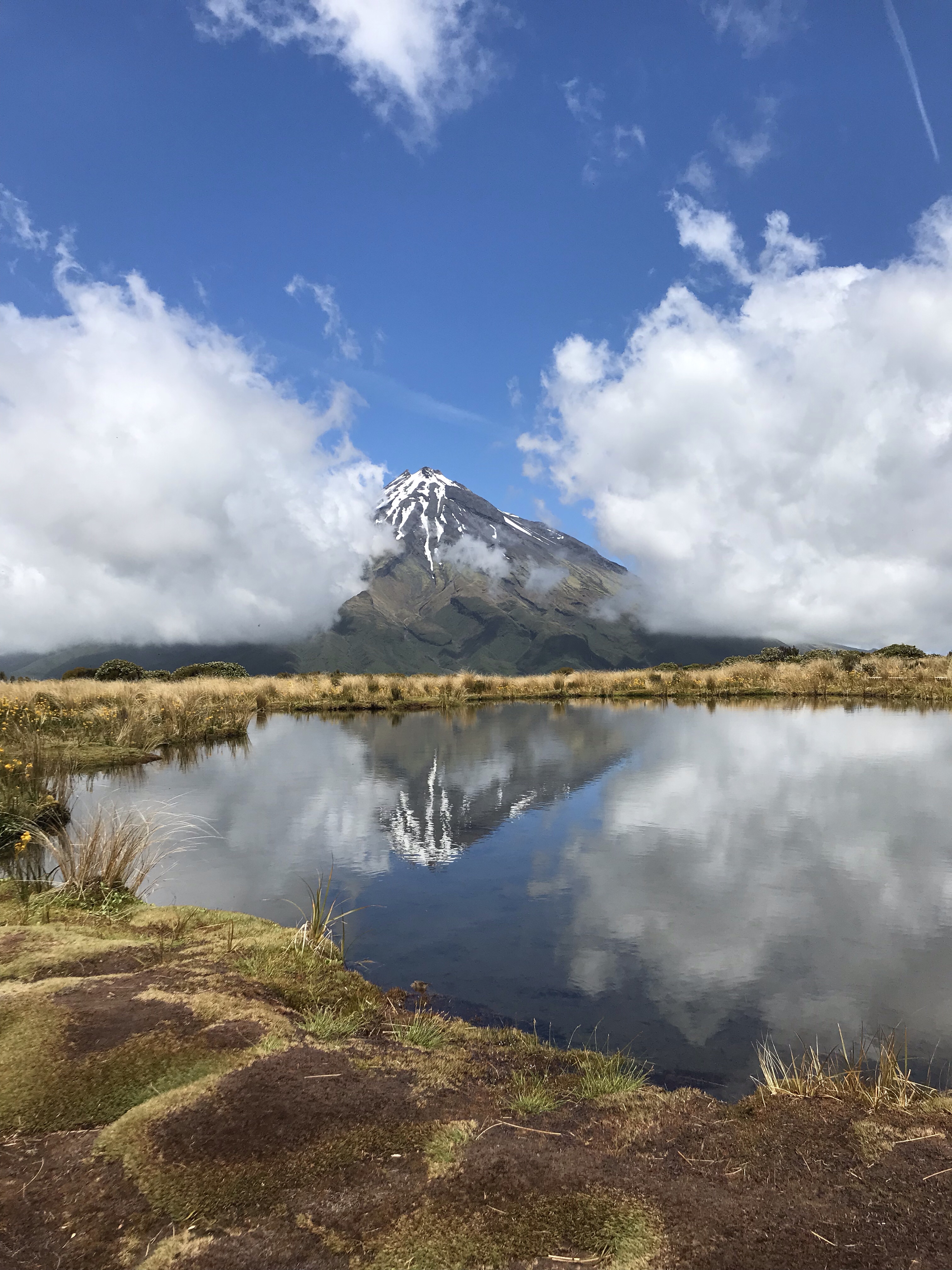 Waking up hopeful on Boxing Day (the day after Christmas here is equatable to Black Friday), we went to the Visitor Center hoping to hike some of Taranaki. We ended up choosing a separate hike not on the mountain but rather on the side so we could see the grand mountain. The ascent took about two hours before we got to a series of tarns, or small alpine lakes. There were clouds everywhere and we were pretty pessimistic that we would be able to see Taranaki. We had some snacks and waited probably thirty minutes, almost giving up, before the clouds finally started to part. Eventually, all of the clouds cleared and we were left with breathtaking views of Taranaki. We even got some good pictures of the mountain reflected in the tarn. Satisfied, we headed down the mountain since we had to be near Tongariro that night, a three hour drive.