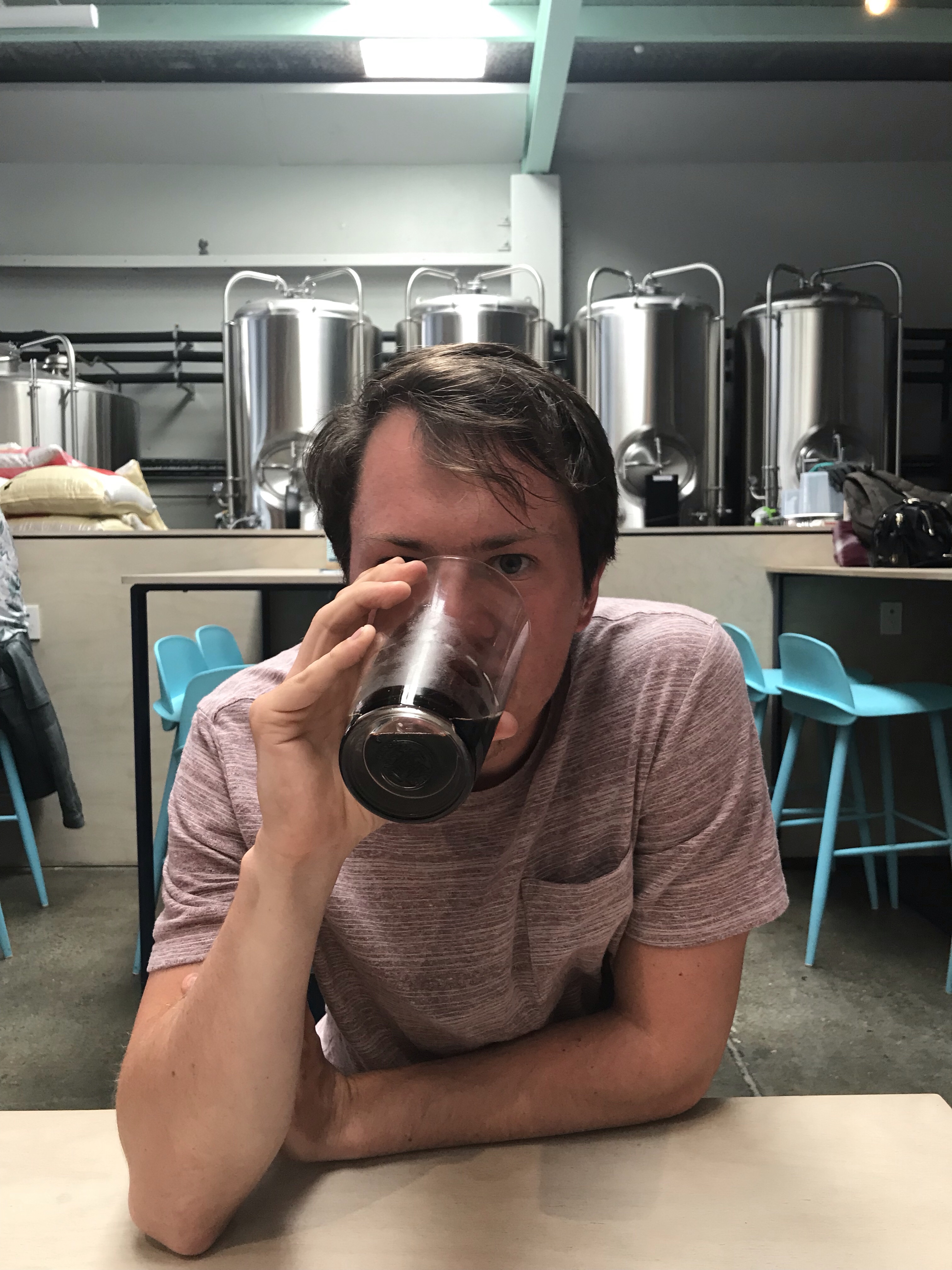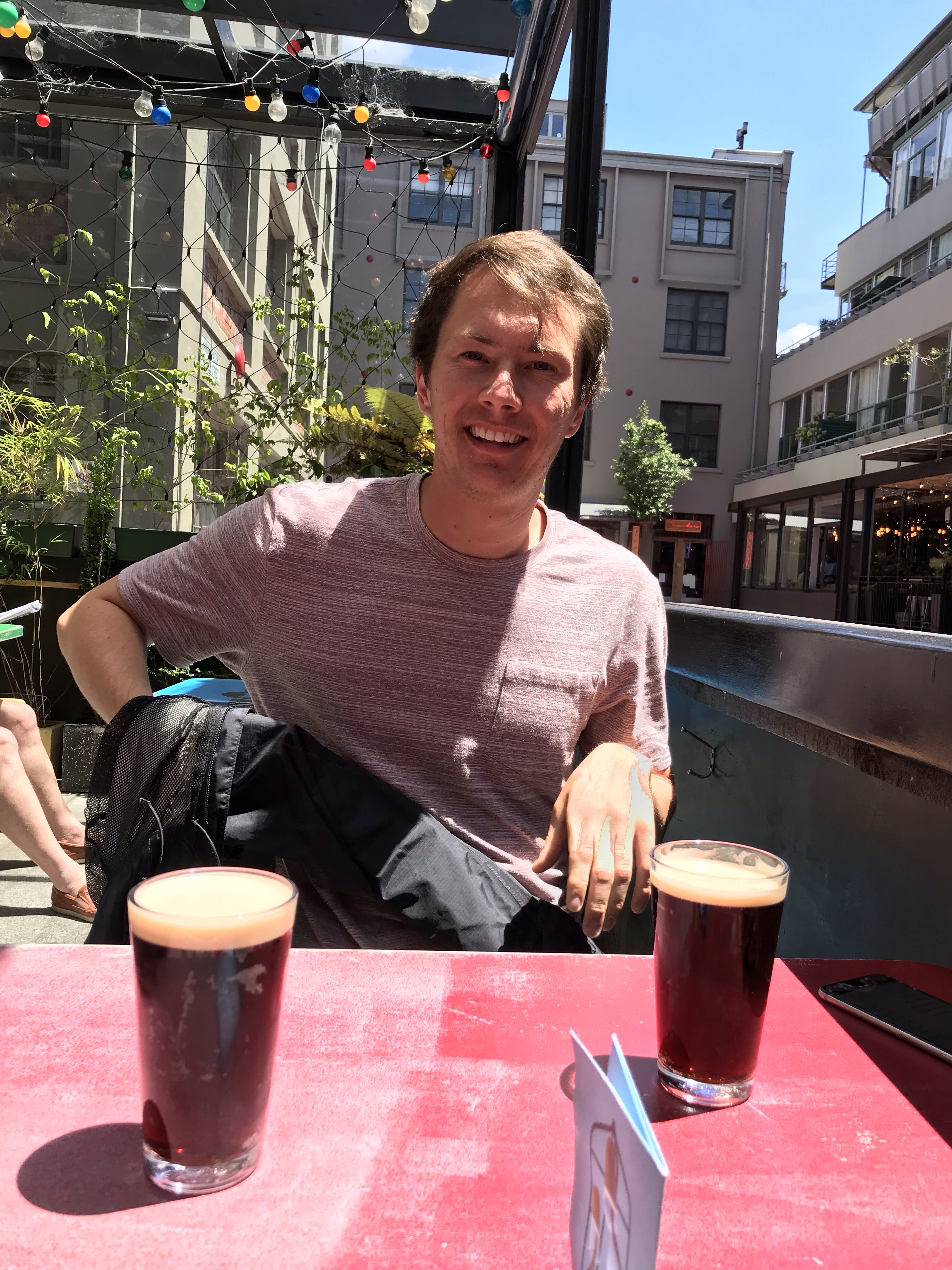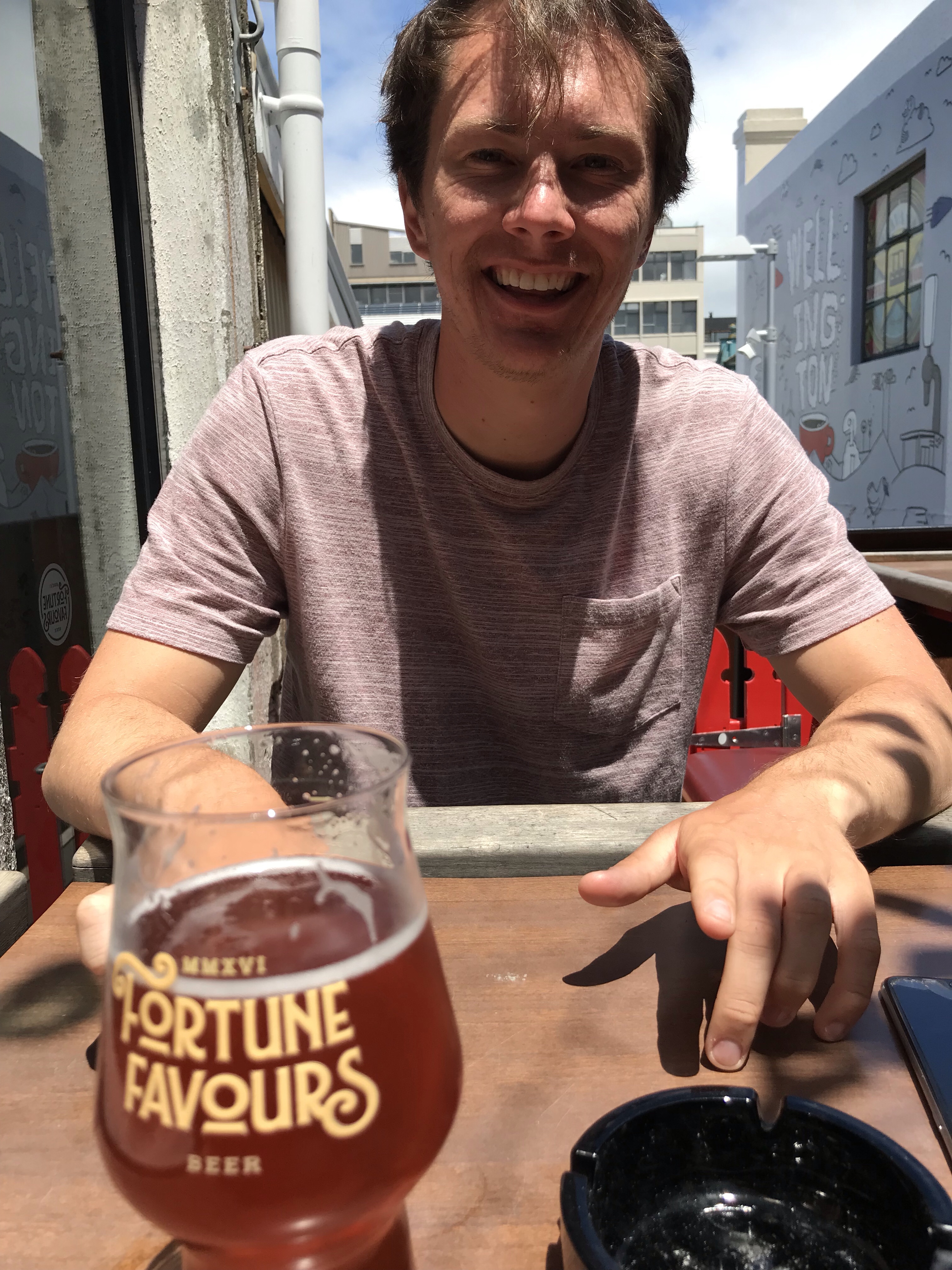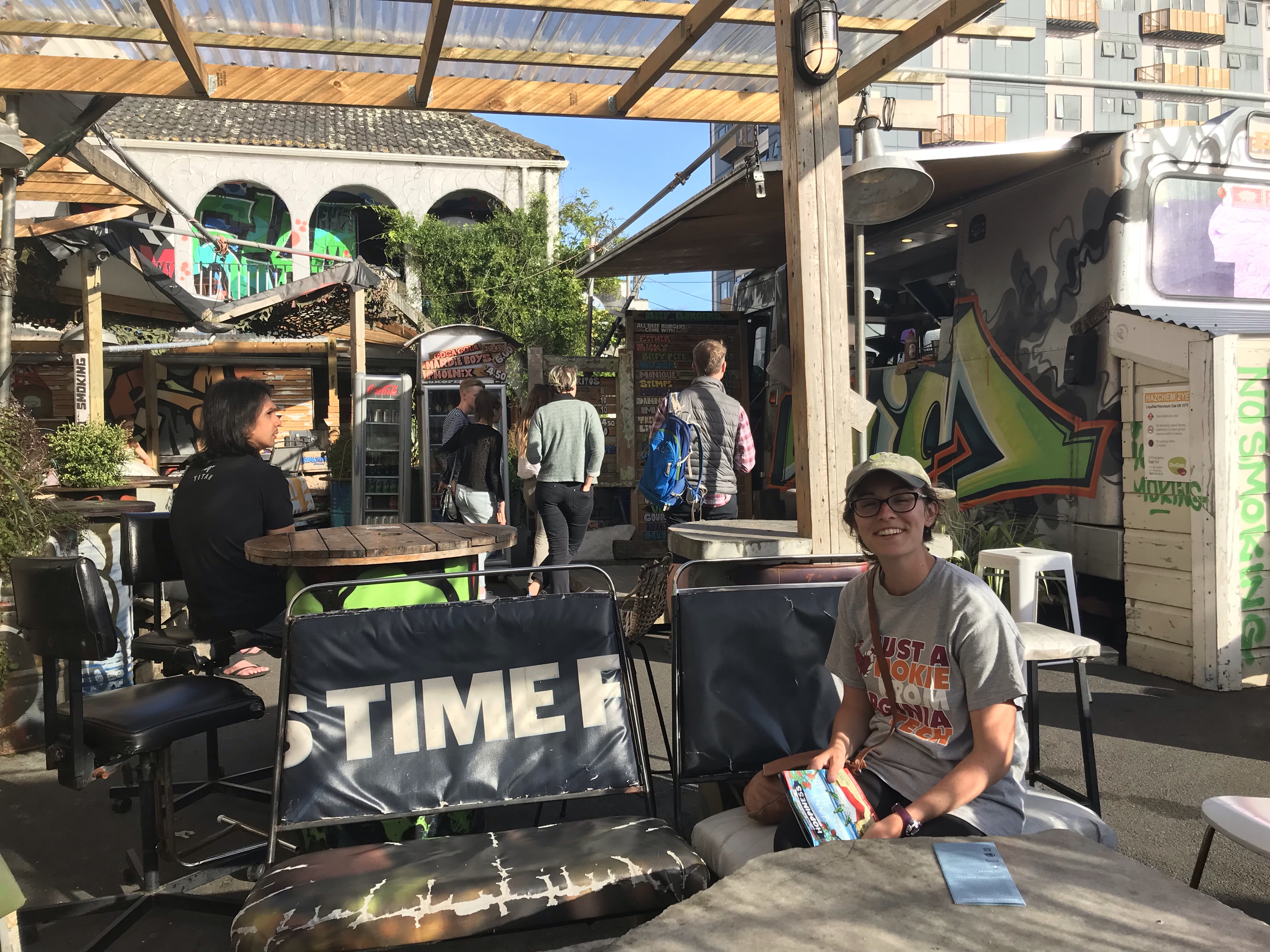 After looking at hobbit feet props and LOTR costumes, we checked into our AirBnB before heading back into the city. At this point, we went downtown to Cuba Street, a famous street in the city known for food, bars and lively entertainment. Wellington is also the self-proclaimed beer capital of NZ (yes, in addition to Nelson), so we had to check out some breweries. We went to The Third Eye, HeyDay Brewing and Black Dog Brewery, all within walking distance of each other. We shared a delicious s’mores stout at one! The beertender at one of the breweries gave us a copy of the beer trail map. If we went to 8 places on the list and bought either a drink or food, we got a stamp. Eight stamps meant a free T-shirt, a certificate and eternal glory of doing an international beer trail. We had found a quest. After the beers, we went to a really cool food truck called Ekim that sold delicious, and rather cheap, burgers and burritos. We split one of each in the eclectic chairs and setting of the food truck.