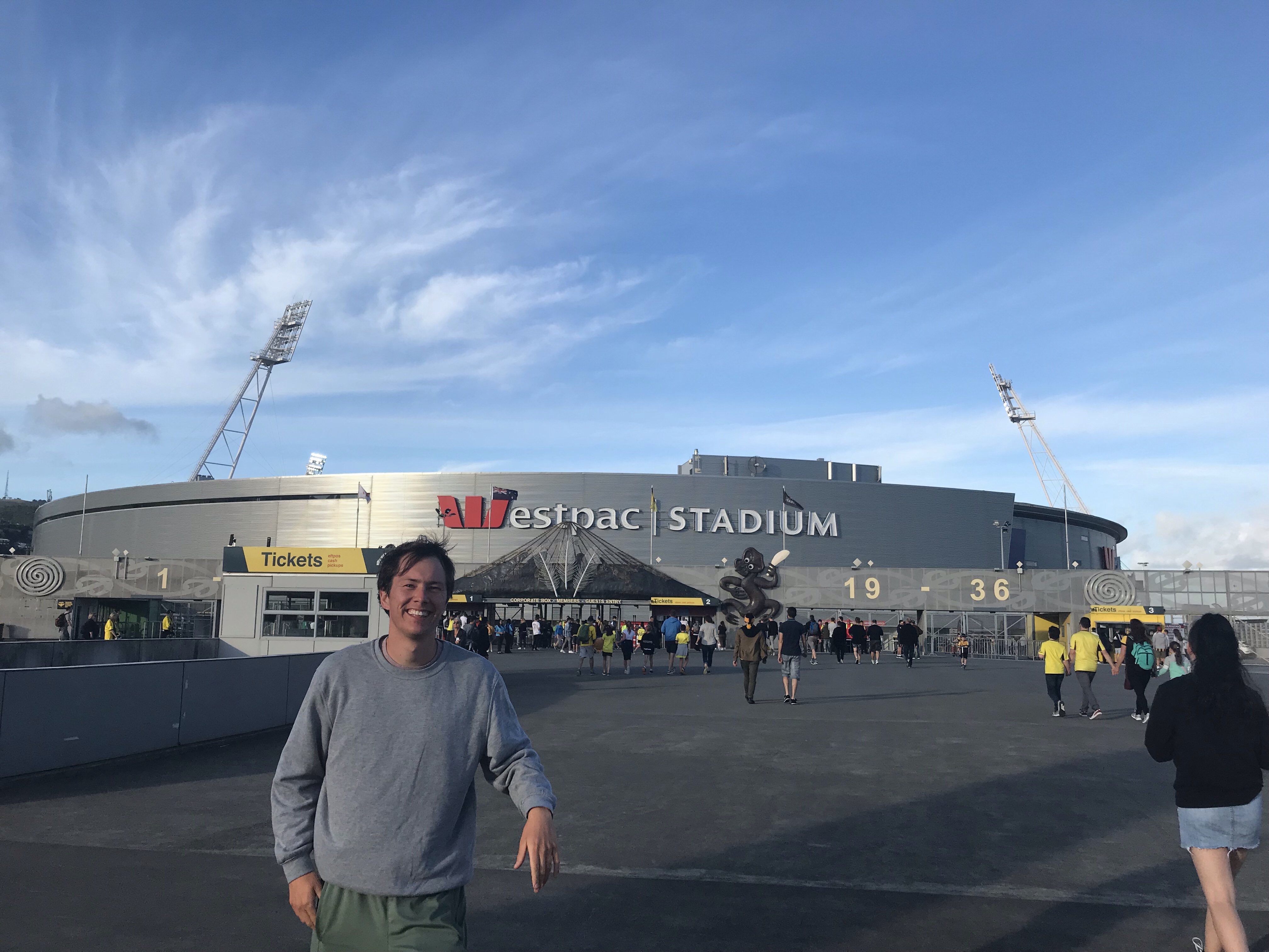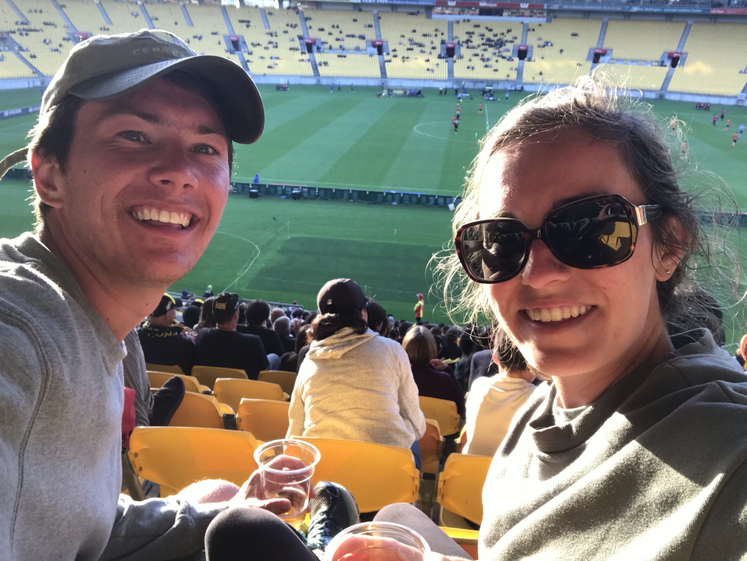 After eating, we headed to WestPac Stadium for a football game! We had seen a billboard on our way into the city and first thought it was a rugby match, which we really wanted to see. Unfortunately, rugby is a winter sport. After we asked someone, we were told the Wellington Phoenix was a football team. But wait, we aren’t in America! This isn’t actually football but rather a soccer match! The Phoenix were playing the Australian Brisbane team and for a mere $40USD, we got pretty good seats. Granted, the stadium was a bit empty but the atmosphere was still super fun! It helped that the Wellington team was better so every time they scored, we joined the crowd in cheering. Since the team was called the Phoenix, after every goal, flames were ignited for a few seconds to represent the infamous bird emerging from ashes. The Phoenix ended up winning the game – what a fun international sporting event. At this point, it was around 10pm and we headed back to our AirBnB.