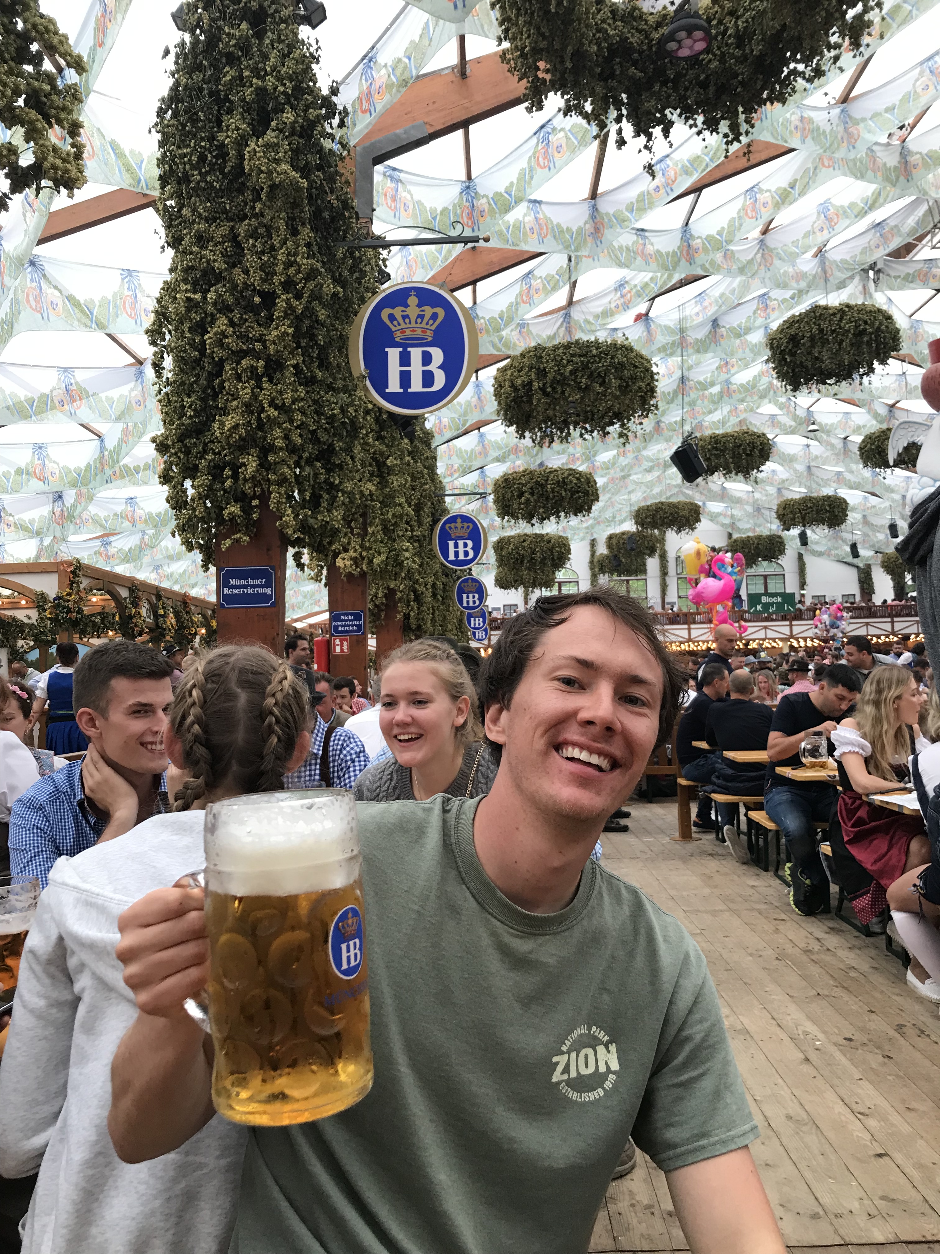 After a little bit of time and a lot of beer, we bid our goodbyes for the second tent. At this point around 3, the tents were starting to get more full. Luckily, we found two seats at the long tables next to some more English-speaking beer pals. We conversed for a bit, watched some guy at our table chug a liter in less time than it took me to say “wow,” and left for the third tent.