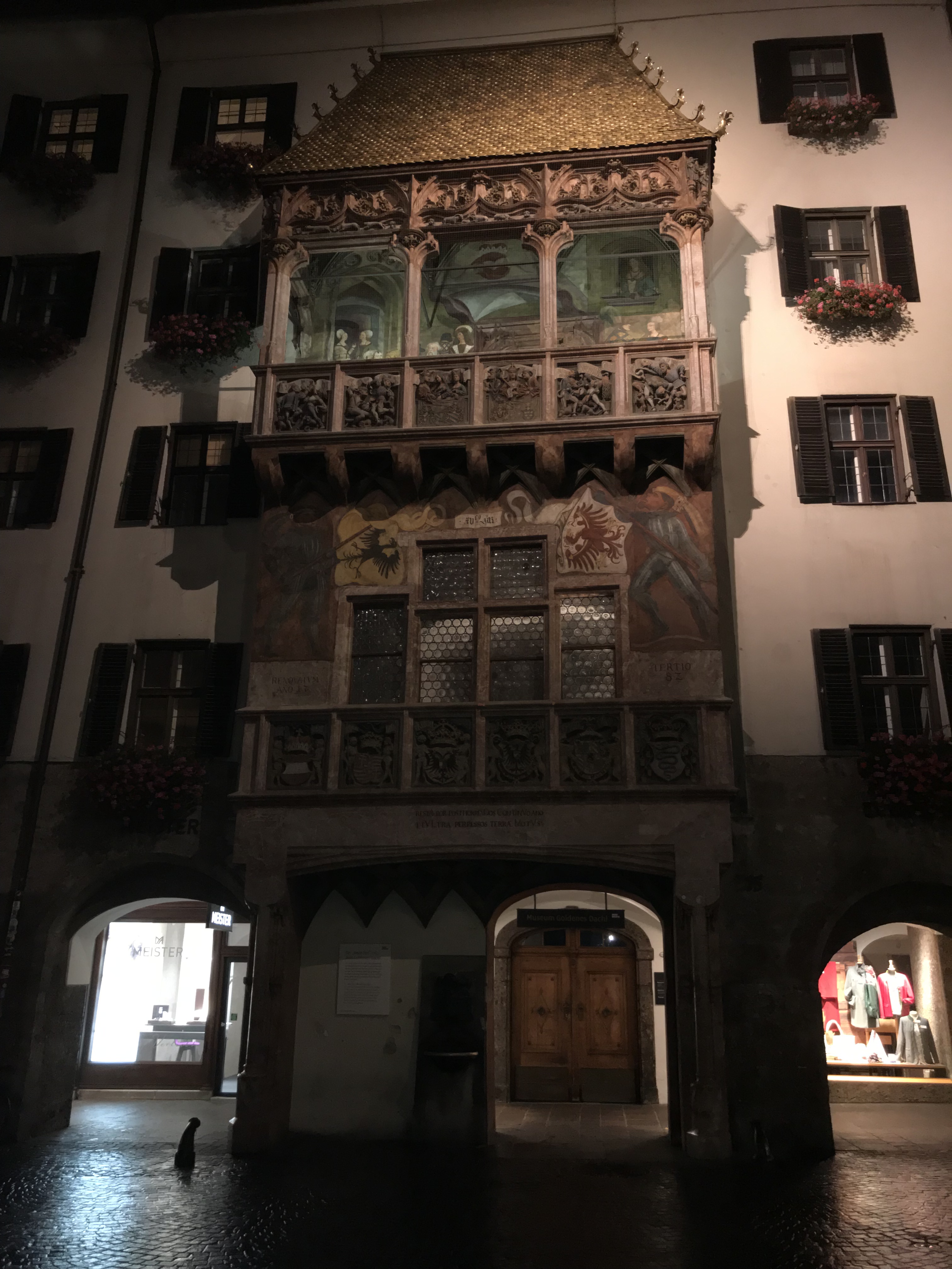 We immediately left for Innsbruck hoping to get away from the weather. Unfortunately, the weather wasn’t much better there. We ended up walking around old town a little and heading towards the local brewery (of course). We also went to a restaurant called Stiffskeller, located in the heart of old town. We ordered a bunch of Tyrolean food, including boiled sausage, German potato salad, and goulash (hence the blog title because Jared tried to pocket a leftover pretzel in his pocket).