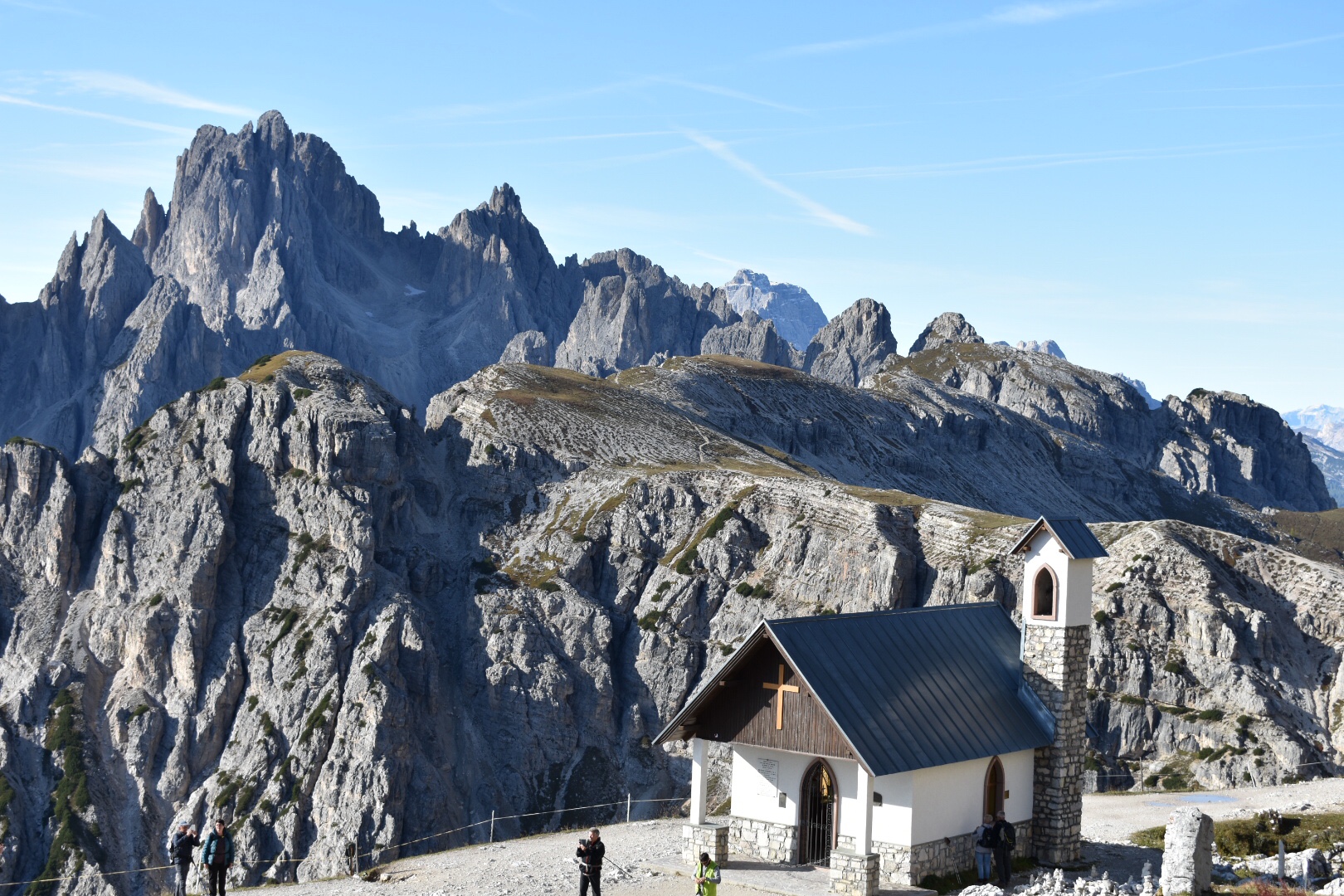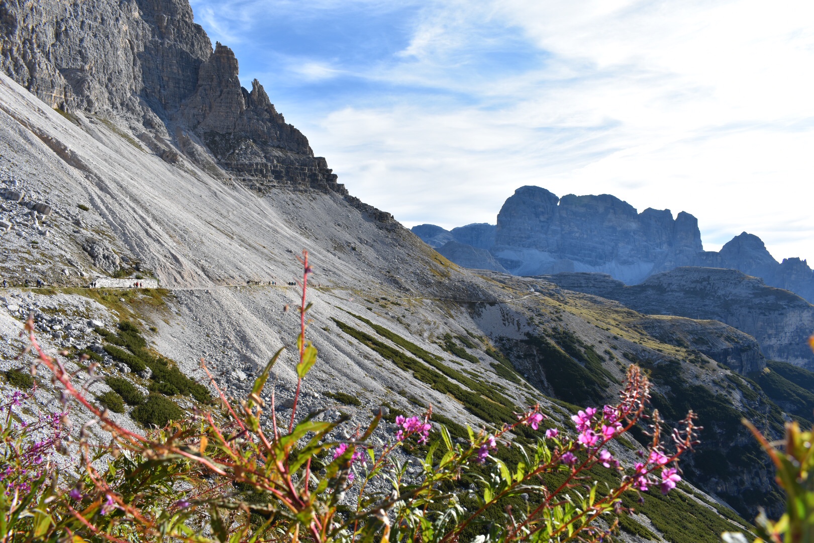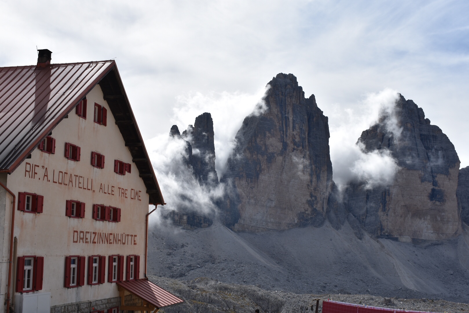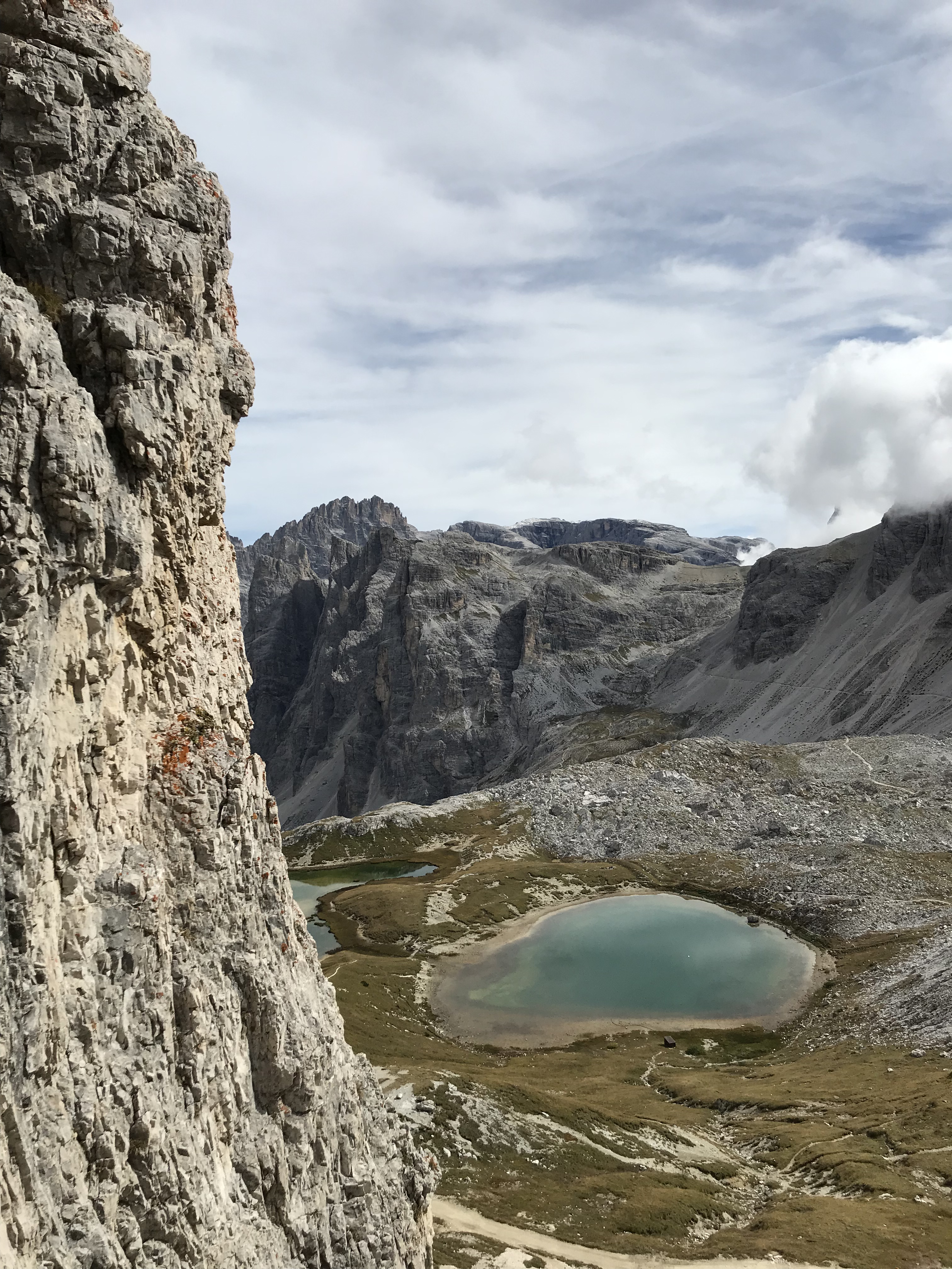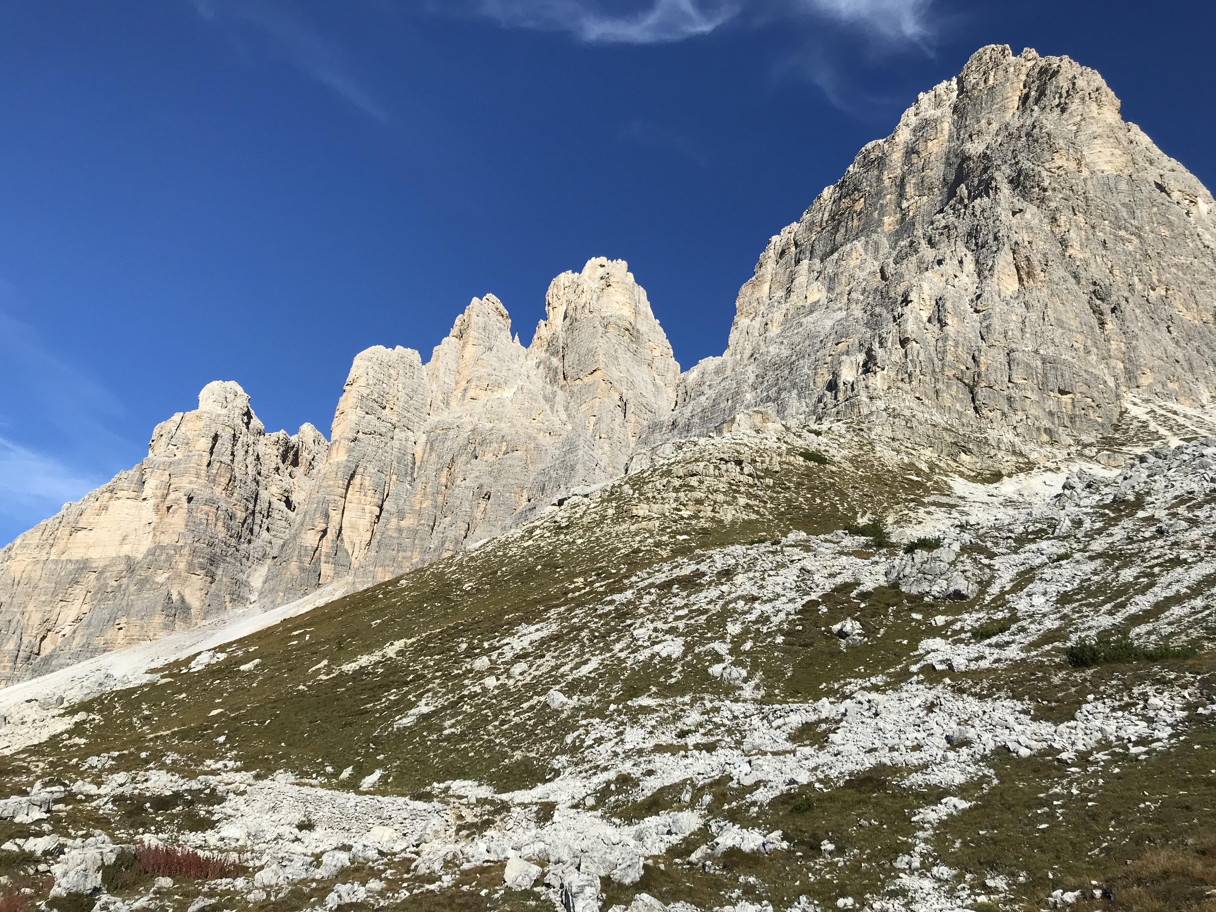 The next morning, we woke up early to get to the trailhead for the Tre Cime di Lavaredo hike. We had to pay a 30 euro toll just to get up to the trailhead parking (but soon we’d realize it was totally worth it). Tre Cime di Lavaredo literally translates to the three peaks of Lavaredo, and they are probably one of the most famous mountain groups in the Alps. Until 1919 the peaks formed part of the border between Italy and Austria. Now they lie on the border between the Italian provinces of South Tyrol and Belluno and still are a part of the linguistic boundary between German-speaking and Italian-speaking majorities (we did hear a lot of different languages). History fact: Since the front line between Italy and Austria during World War I ran through the Tre Cime peaks, there are a number of fortifications, trenches, tunnels, iron ladders, and commemorative plaques in the area. The hike basically traversed around the base of the three magnificent peaks, with Refugios, or mountain huts, sprinkled throughout the trails. The terrain was really rocky, almost like another planet.