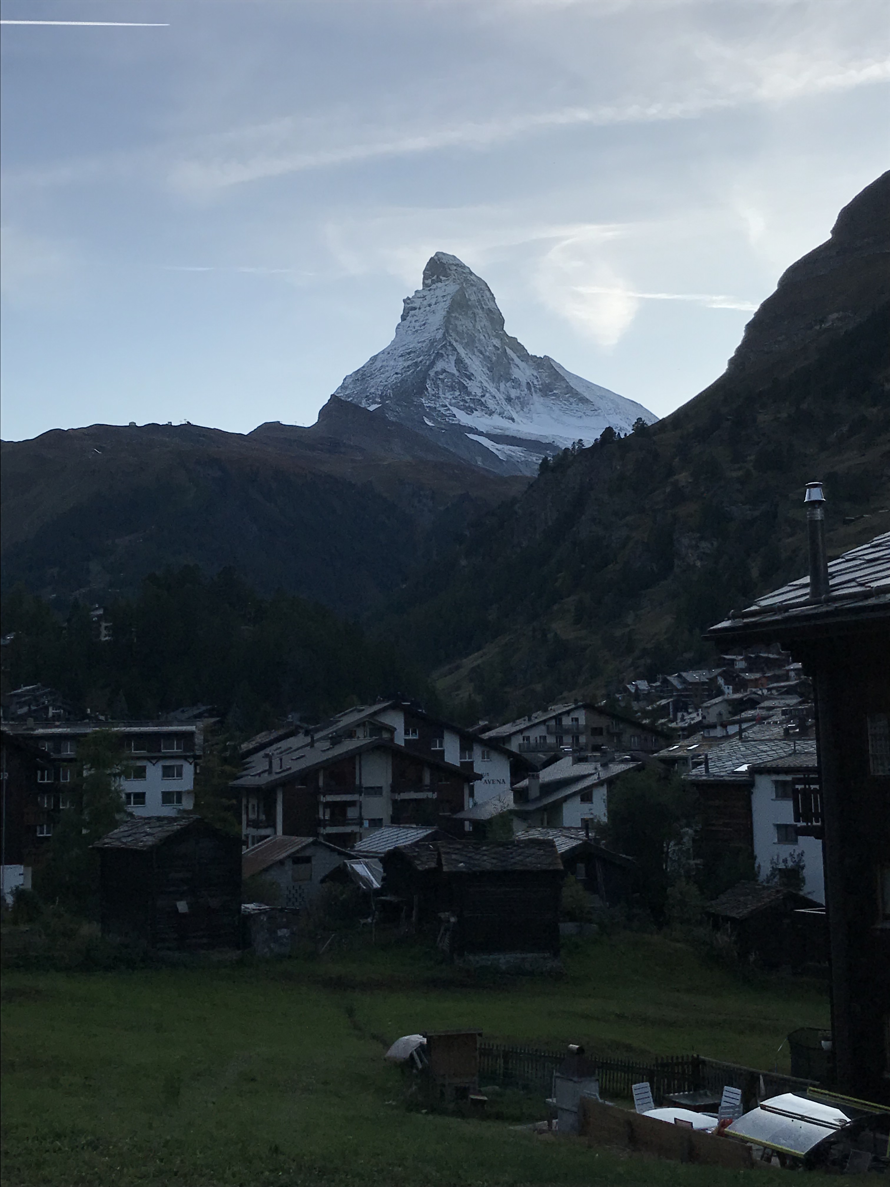The next morning, we left for about a five hour trip to Zermatt – back to Switzerland! Zermatt is a southern Swiss town known for its skiing in the winter and its hiking in the summer. It was a little touristy and ritzy for our taste – we had to drive to the town before it, pay to leave our car, then pay to take a train into Zermatt. Of course we were literally getting off the bus loads when we got to Zermatt. Unfortunately, we got there too late to do any hiking so we walked around town to find the best view of the Matterhorn. The Matterhorn is a mountain of the Alps, straddling the main watershed and border between Switzerland and Italy. It is a large, near-symmetrical pyramidal peak in the extended Monte Rosa area of the Pennine Alps, whose summit is 4,478 metres high, making it one of the highest summits in the Alps and Europe. The peak really looks just like Mount Crumpit from How the Grinch Stole Christmas with it’s crooked, jagged peak. We walked around to a less crowded section of town and found an amazing view looking right up at the peak. We then went into town and finally tried traditional food at a Swiss restaurant – not going to lie, not the biggest fan of Swiss food! We had raclette, rosti and breaded chicken (not Swiss). Very cheesy and very heavy. After dinner, most of downtown was pretty quiet and shops were closed up, so we took the train back to the car and proceeded to our AirBnB.