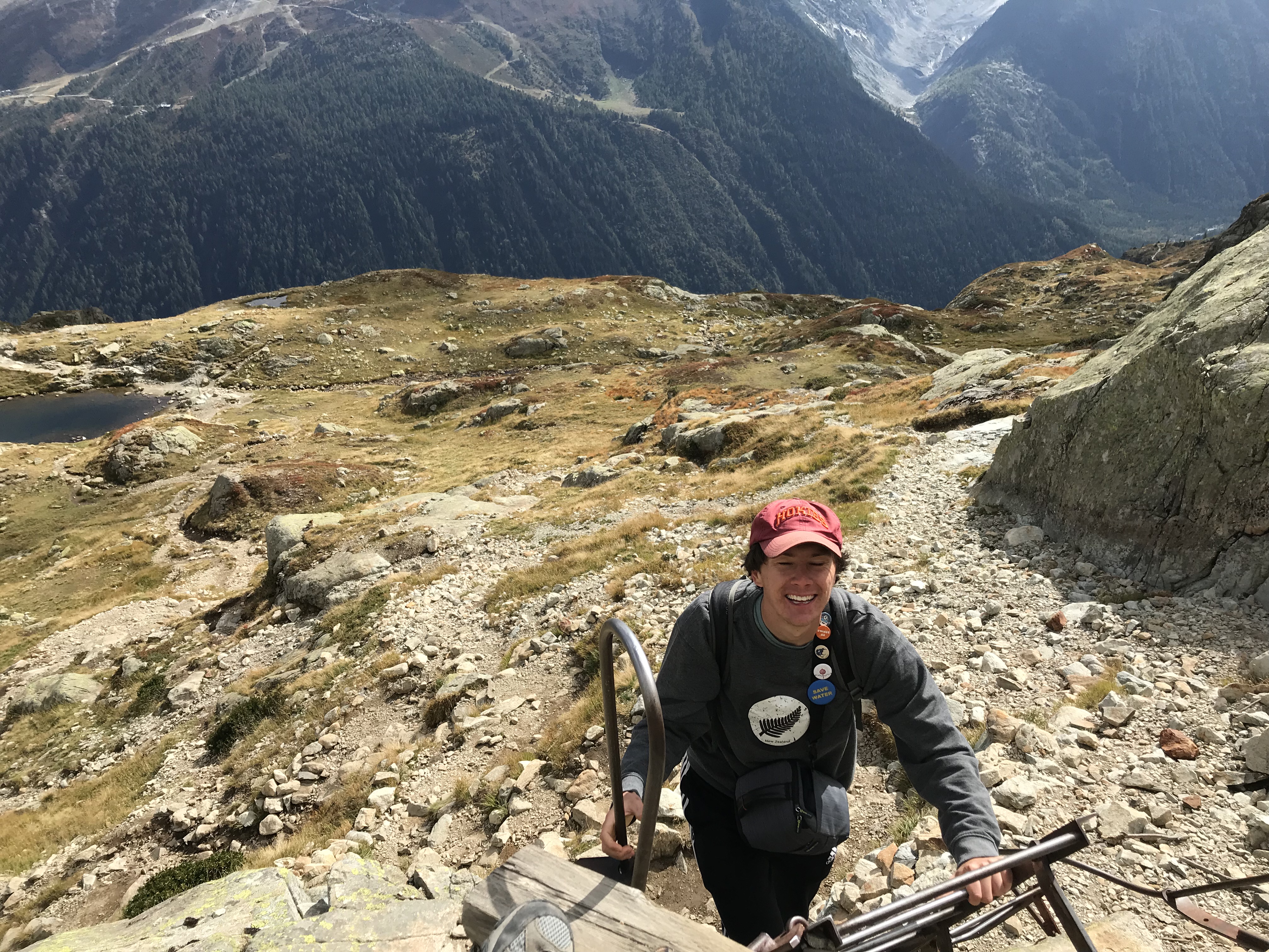 We spent a little more time researching that night to find a hike we were sure we could do without access to cable car or train. We ended up going to a Nature Reserve and hiking ~12km to Lac Blanc. This hike was no joke. It was over 3,000 feet in ascent and the beginning of the hike started steep and kept going until basically the top. It was probably the most challenging hike I’ve ever done due to the steep ascent so quickly. The weather was also so crazy! We started at around 9AM and it was very cold but once we got moving and the sun stuck out, I had shed about three layers. Then, we got to the lake finally and the sky was completely overcast. I was wearing four layers and still cold! The lake itself was OK – the views were much more pretty. On our way back down, legs shaking from fatigue, we ran into our first ibex.