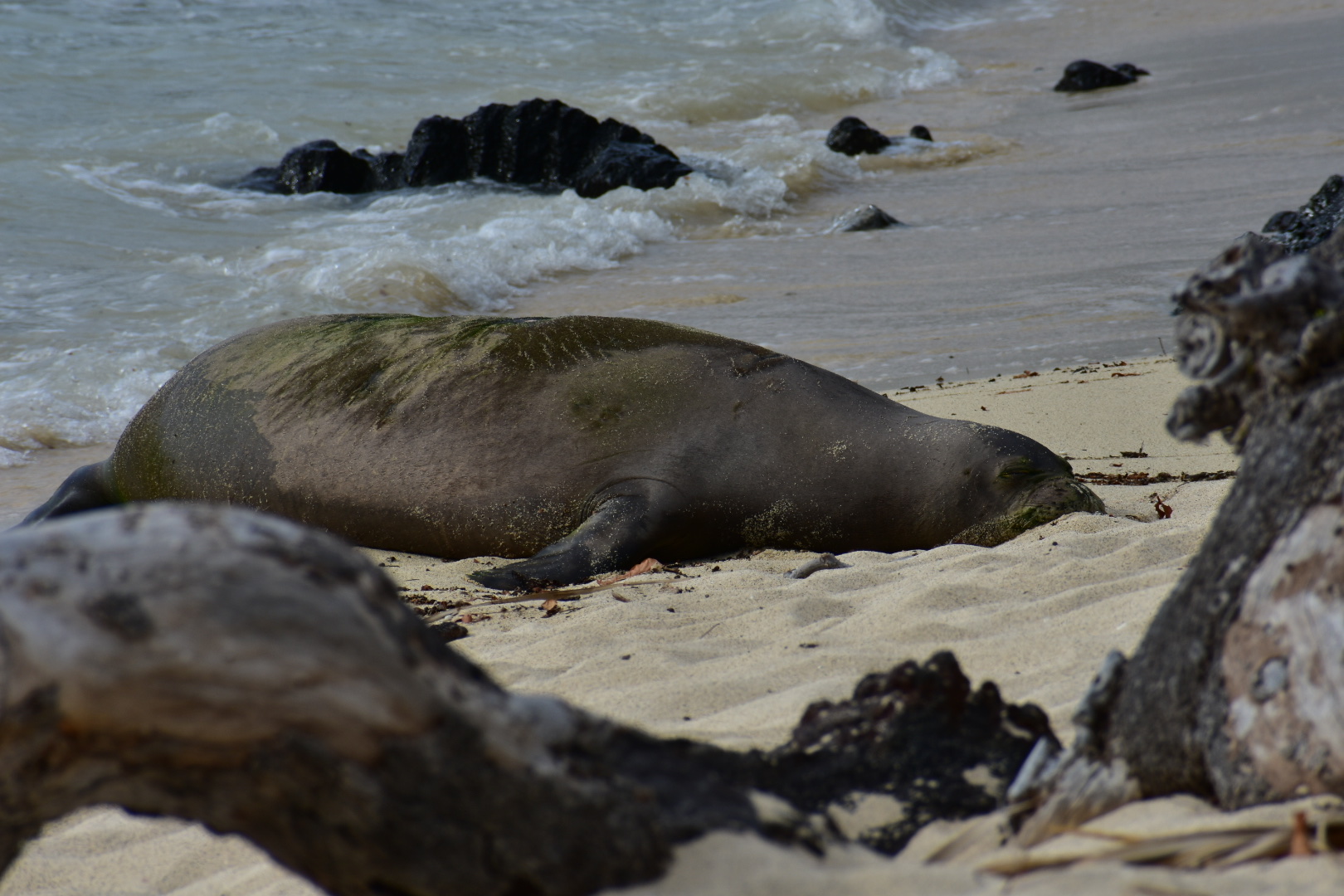 The rest of the day was spent running errands (getting groceries), and visiting other beaches. We drove a few miles down this rough gravel road to get to Mahaiula Bay and hung out there for a bit. We saw an endangered monk seal basking in the sun!