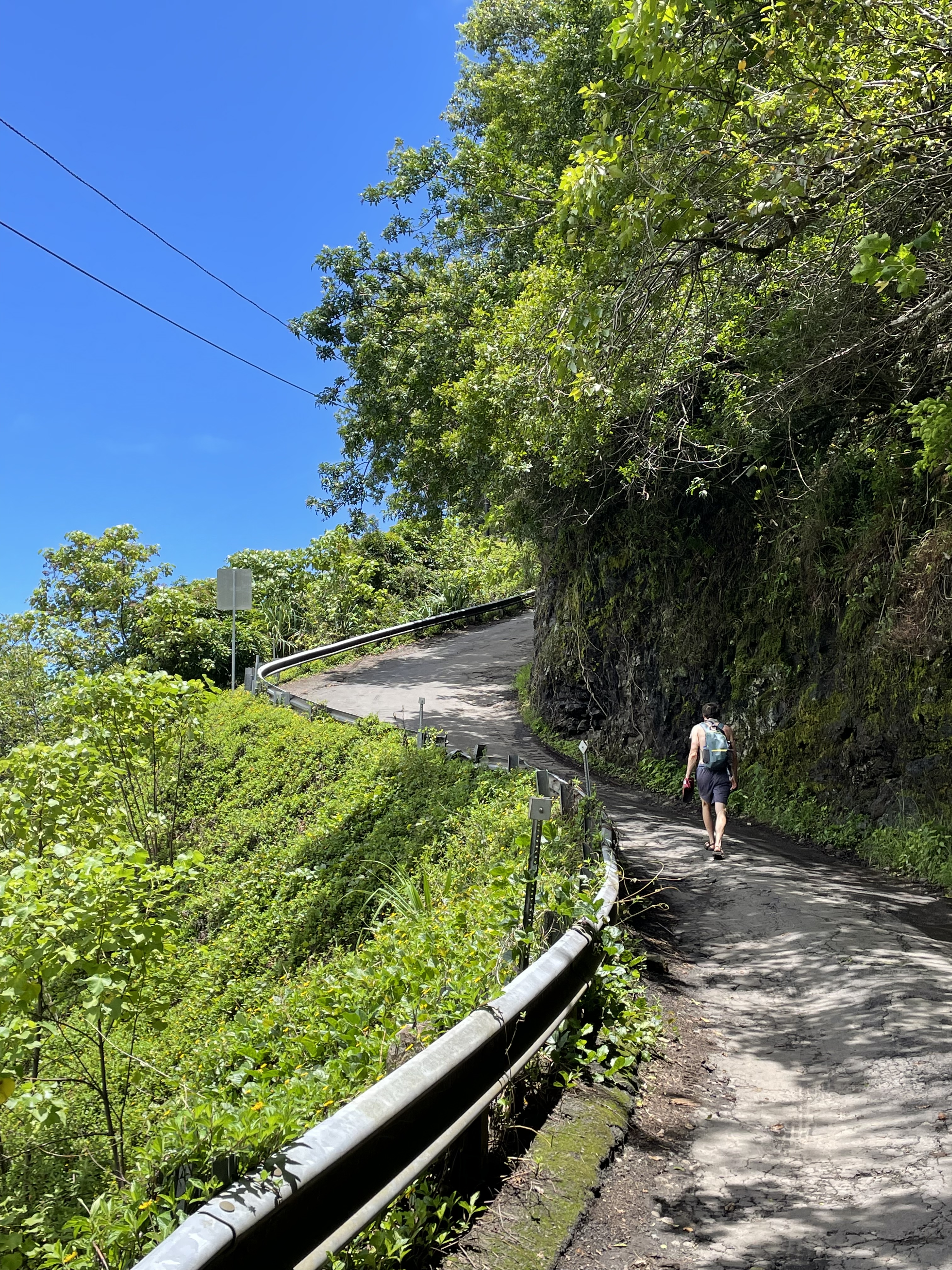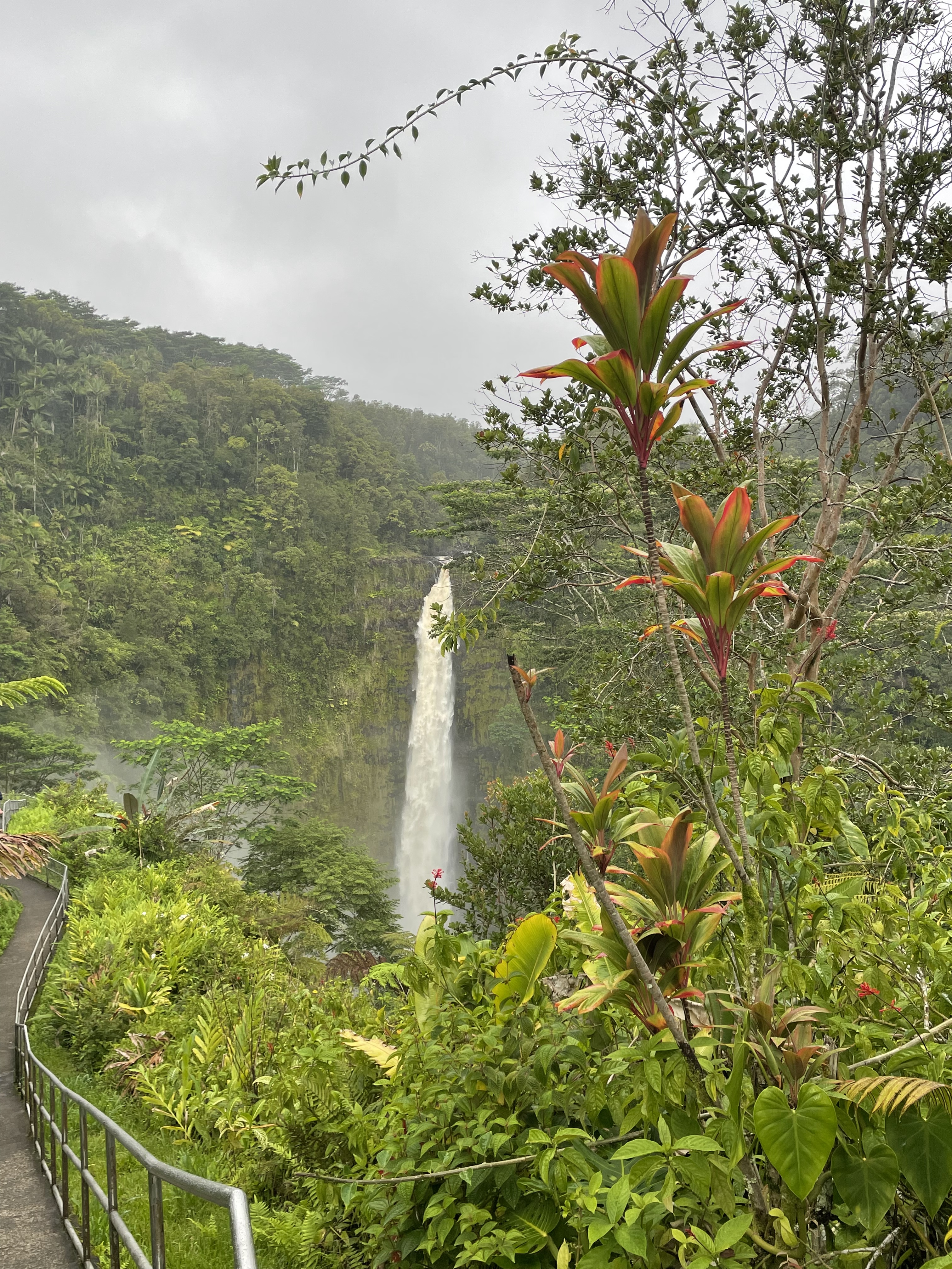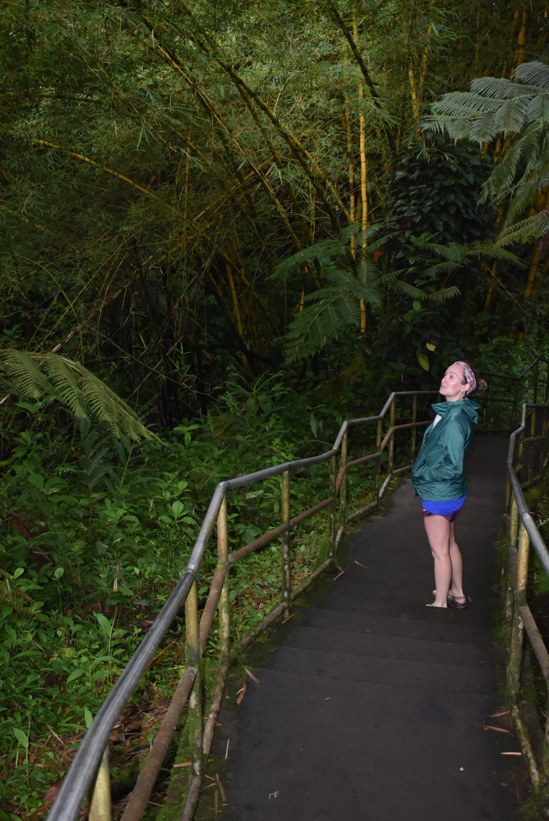 The hike back up to the car was very steep and very hard, but it was cool to hug the edge of the cliff and see the valley below us get further and further away. After we made it back to the car and started driving back, we stopped at some fruit stands (aka tourist traps) for $10 “ice” cold coconuts! It was a fun experience though. We then stopped at Akaka Falls state park and did a quick half-mile loop to see the waterfall.