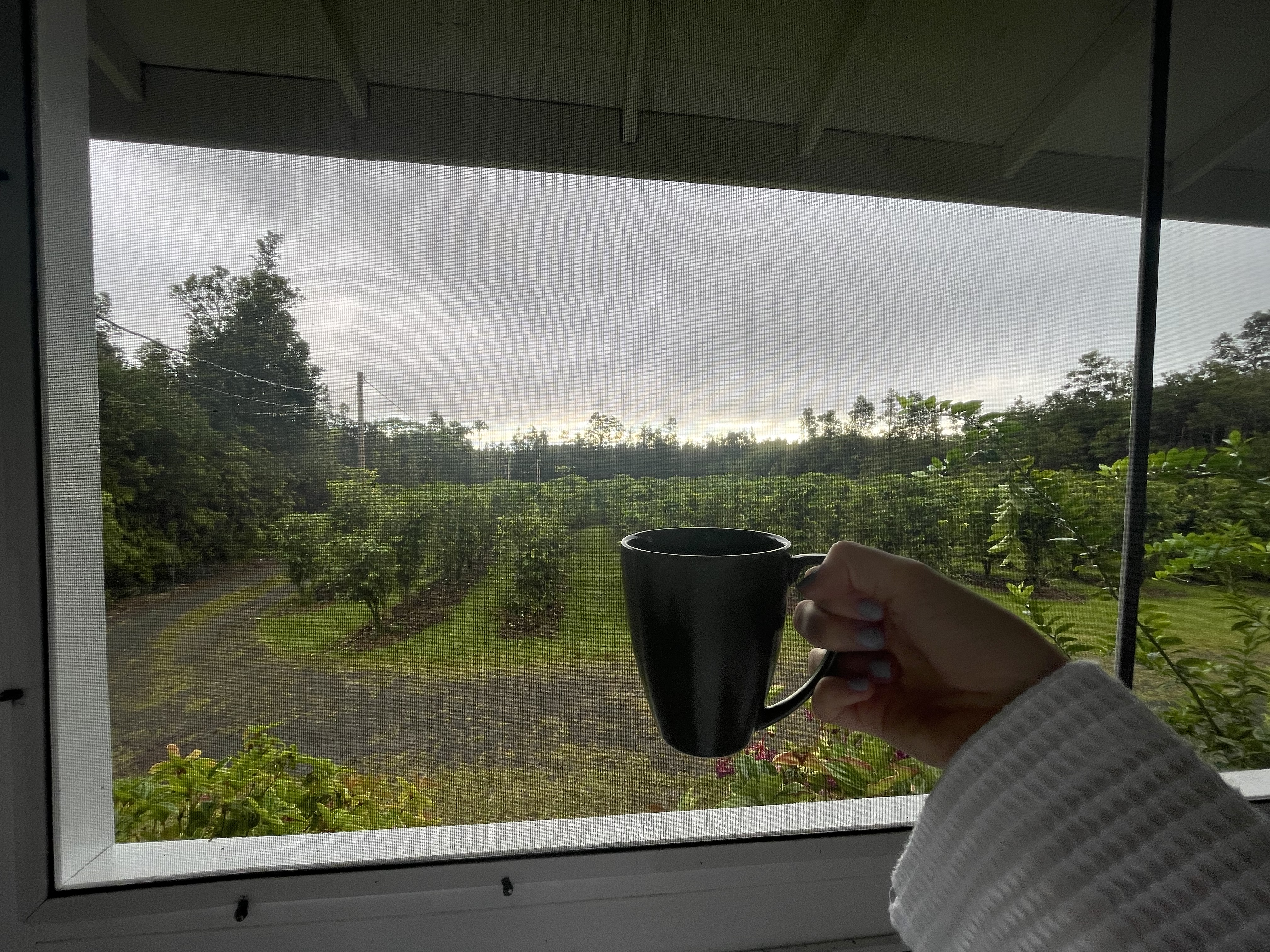 The drive to the Airbnb was pretty nuts. The host said the road leading up to it was filled (lol) with potholes and worse than any condition he’s seen in the past twenty years of living there lol. Honestly, we’ve traversed through worse roads so it wasn’t toooo bad. The destination was definitely worth the trouble though. It might be the coolest Airbnb we’ve stayed at – it was on a coffee farm and had an amazing porch overlooking the orchards (fun fact: coffee is a fruit)! We stayed here for two nights and I wish it could’ve been more.
