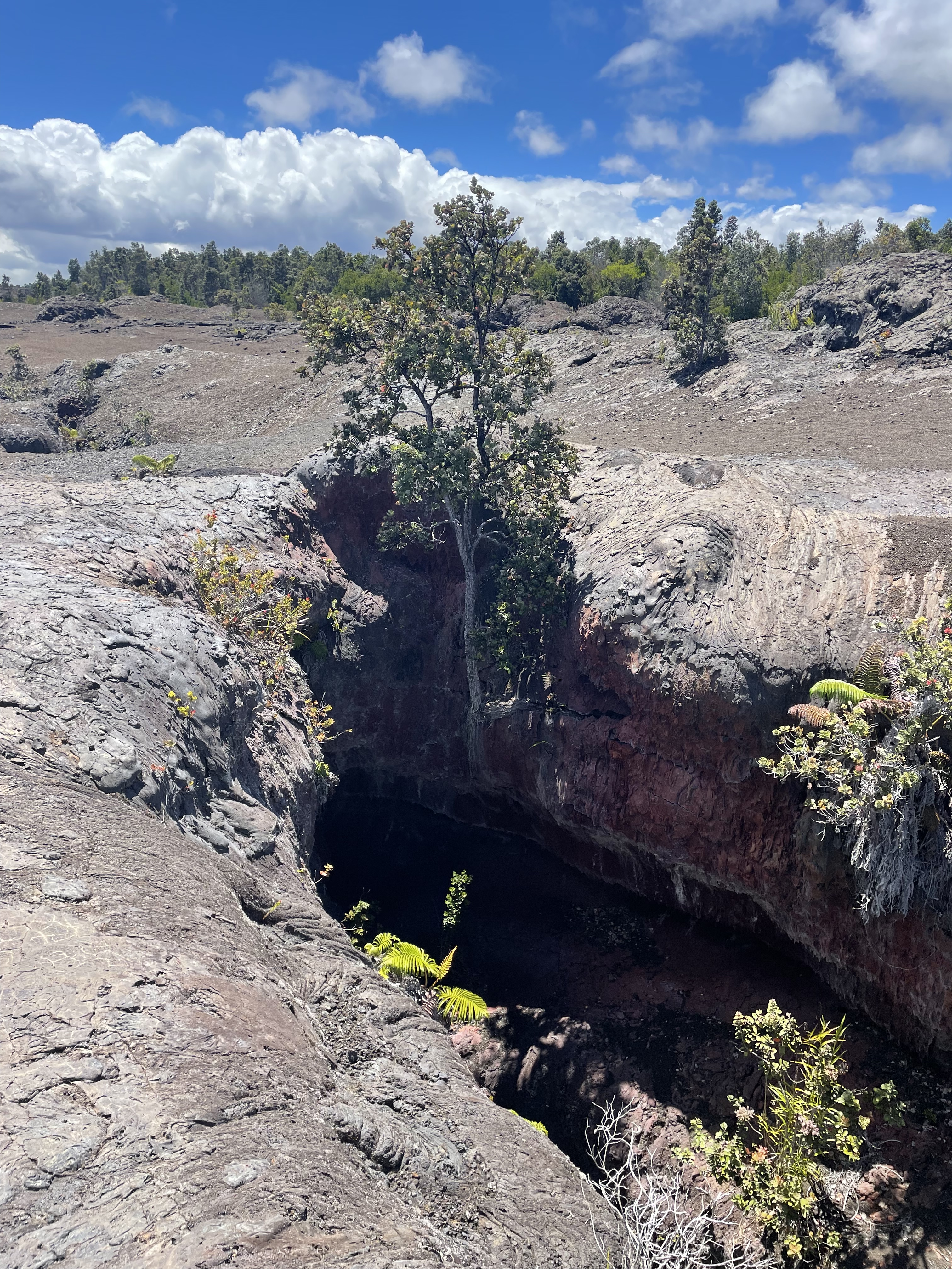 Then, we drove over to XYZ where we met the ranger (Steve) for our hike through lava fields. Steve’s a volunteer ranger who’s been visiting the park for decades and his love for the history and geology of the park really shone through on the hike. He pointed out various native plants, told us various mo’olelo (Hawaiian storytelling that’s meant to tell a deeper meaning), and told us about the history of lava eruptions in the park. The story he told us is a famous legend about the love of Ohia and Lehua (https://www.lovebigisland.com/big-island-mythology/ohia-lehua/)