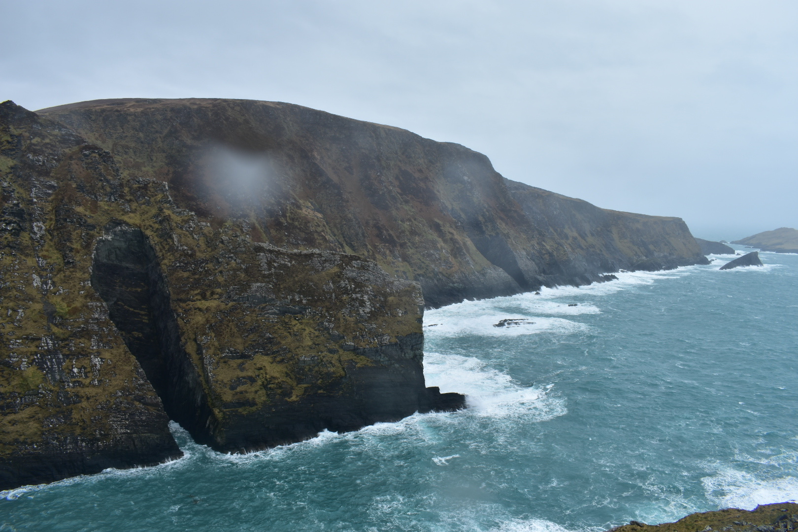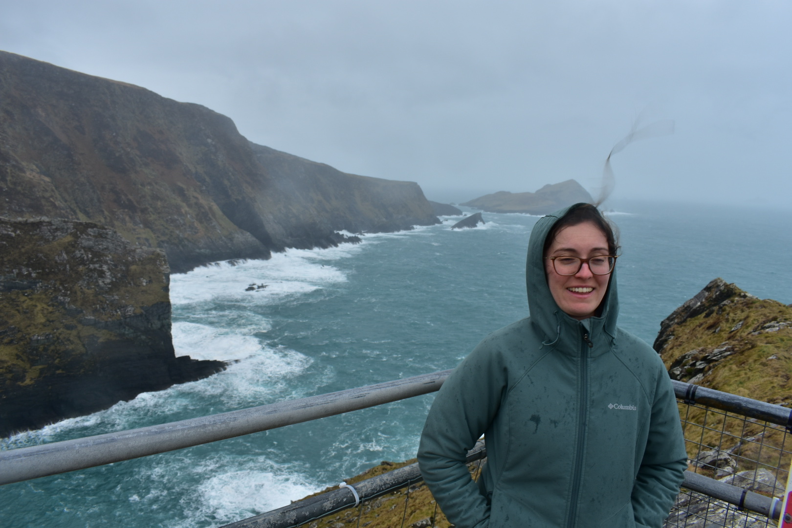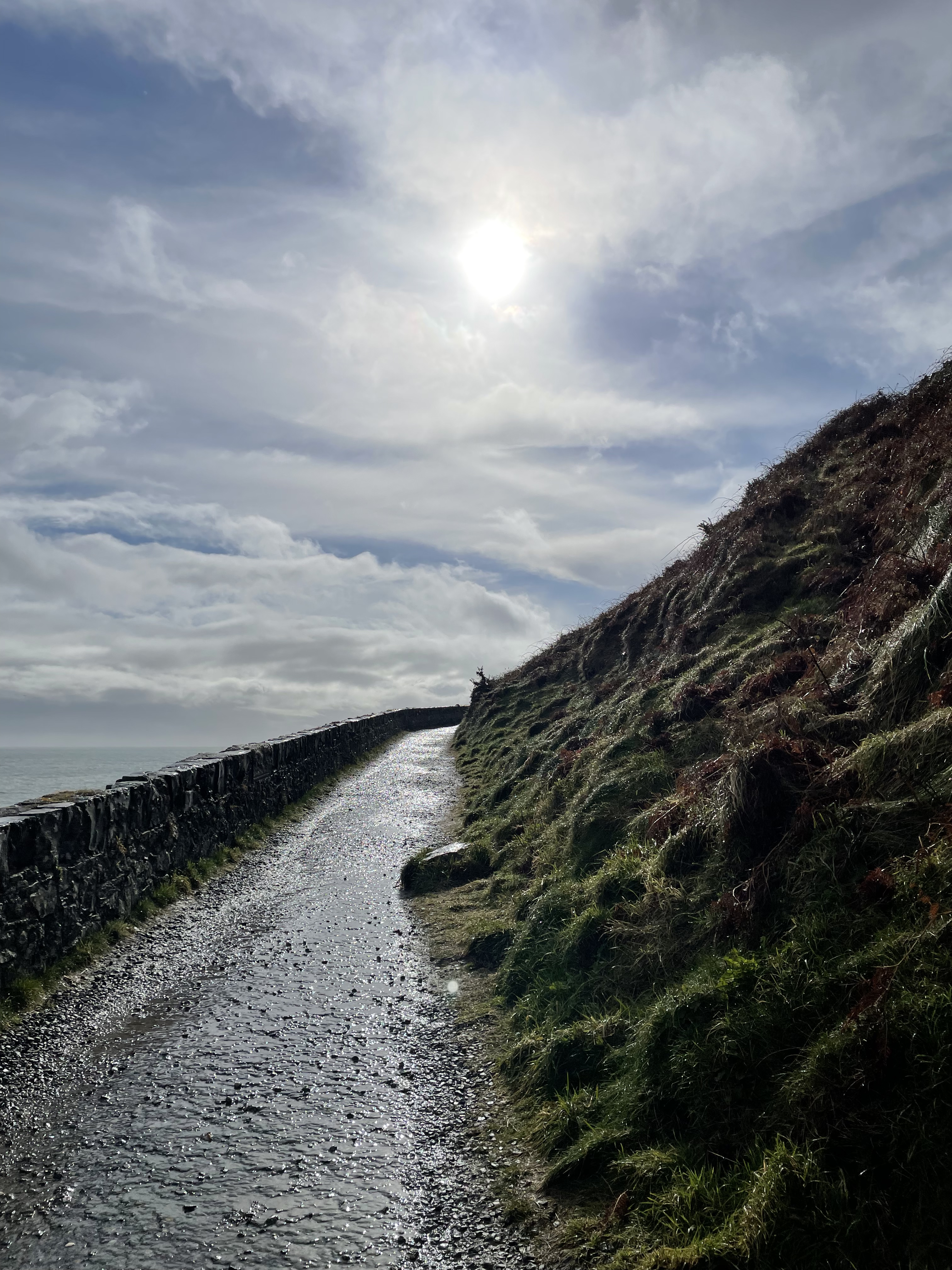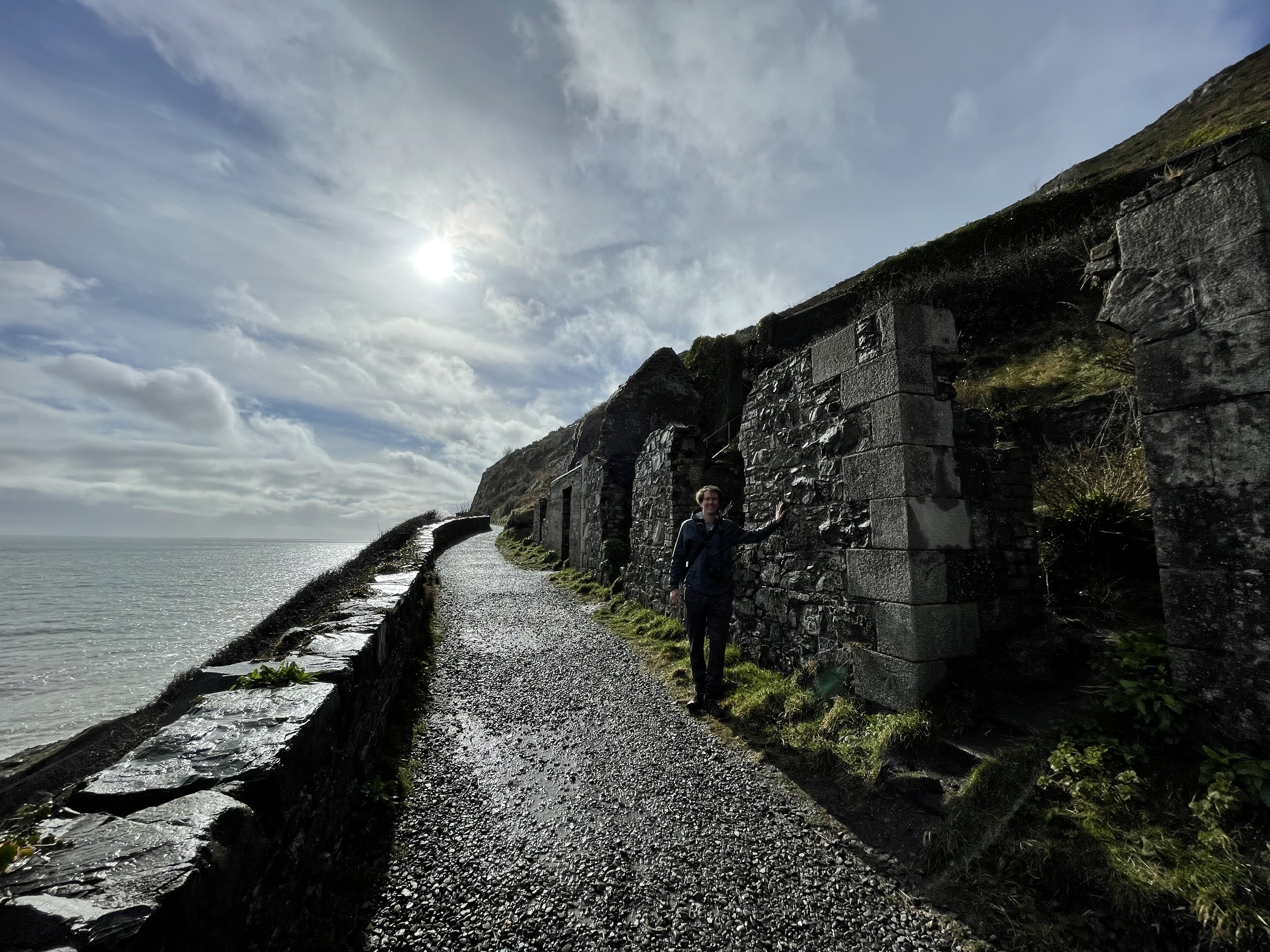 By the time we got over the pass and back to the valley, I had to ask Jared to pull over because I felt like throwing up. I ended up dry heaving on the side of the road instead – an experience I won’t forget! It was such a bummer I had to sleep a lot in the car because I was not feeling well. It was nice though to see such beautiful views from the comfort of the car. We eventually did get out when we got to the Skellig Ring. (That name might sound familiar because Skellig Michael was one of the filming locations for The Last Jedi movie.) From the carpark (parking lot for you non-Irish folk), it was about a ten minute walk up to the cliff overlook. The water of the Atlantic here was so blue and angry-looking, the waves were so intense! It was very windy and the rain was whipping sideways into our face, but it was mostly worth it. Fog had started to settle in, so we couldn’t see the islands off the coast but the sheer cliffs with the circling seabirds was breathtaking. So breathtaking, that when we got down to the bottom of the little hike I finally threw up a little bit in the parking lot. The rest of the drive was mostly sightseeing; Jared stopped at one of the beaches to take photos and we drove through some peninsula towns (Waterville and Sneem). By the time we got back to Killarney, we went to a grocery store for some dinner and as I started to feel a little better, we walked next door to The Shire for some libations. There was live music and various references and memorabilia to the movies, definitely a little hokie but fun! We turned in for an early night with the goal to sleep in until 9 or so the next morning. Now, next stop – Limerick, Cliffs of Moher, and Galway!