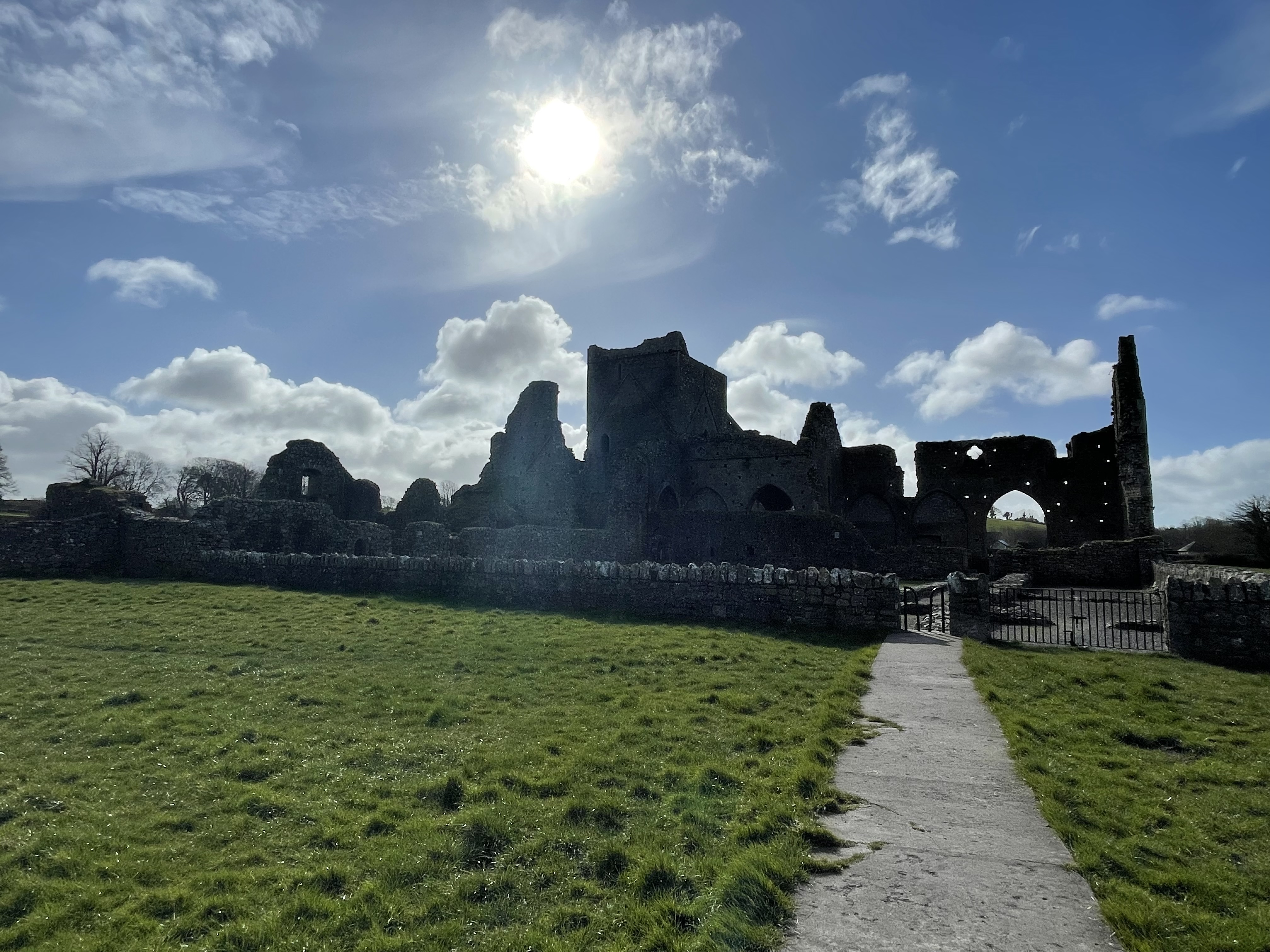 Arriving around 10, we parked at the base of town and walked up towards the ticket kiosk for the rock of Cashel. Lucky for us, the town was renovating parks of the building so entry was free. The ticket lady told us there was a tour at 11am, and recommended we walk down to Hore Abbey and explore, then come back for the tour. The timing worked out perfectly! We briskly followed the walking trail down to the ruins of the abbey, and took some quick pictures before we had to make it back up to Cashel. The abbey itself is a ruined Cistercian monastery, which was established around 1270.