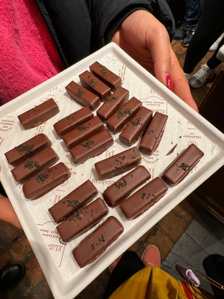 - The next place was Elisabeth (ended up coming back for chocolate from here). We tried a raspberry ganache, earl grey ganache (tasted just like tea), and a whiskey ball.