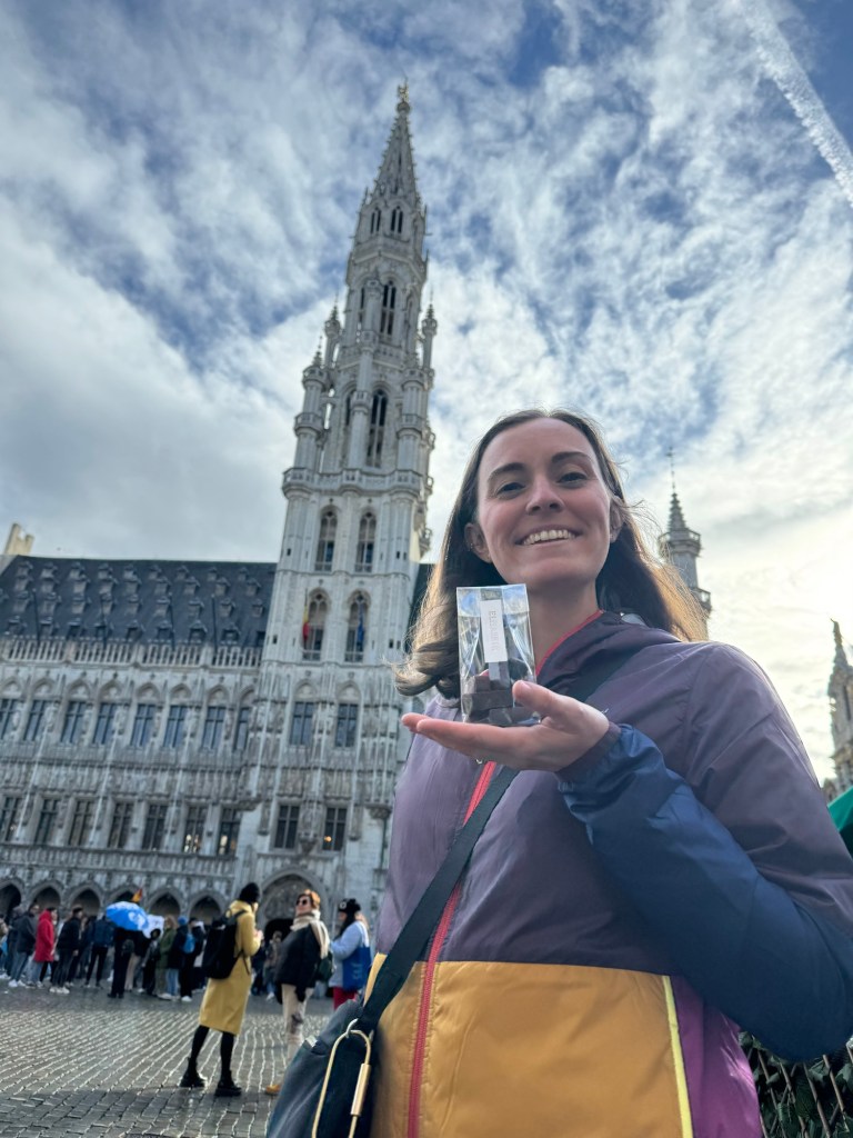 The informational part of the tour ended back at the place where we started, where we were then able to taste three different beers of theirs – a young Lambic, a Gueze, and a fruited lambic of our choice. My favorite was definitely the Kriek, or cherry fruited lambic. We ended up getting some swag, including a sweatshirt and a tin tacker we’re going to hang up back home. Unfortunately for us, we had a 4-hour walking tour after this tour so we didn’t want to carry any bottles around, but wish we could’ve because the bottle prices are the brewery are so reasonable compared to getting them back home. Hopefully we can find some elsewhere in our trip! The tour and tasting ended around noon and we had a walking tour to get to by 1 PM so, drinking the last of our tastings and then going across the street to a bottle shop our friend recommended (yes we got a bottle), we made our way towards central Brussels for our chocolate and beer walking tour.