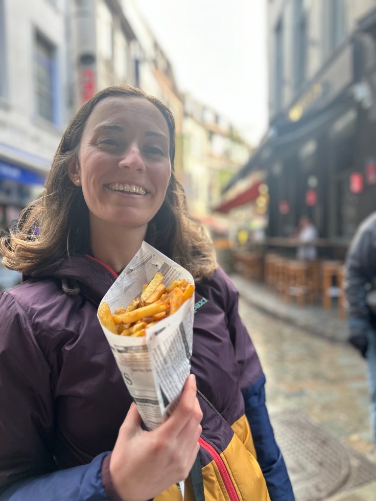 Throughout the tour, we learned a bit about Belgian history as well (but TBH could’ve used more). For example, several of its landmarks are marked as UNESCO heritage sites. One of these includes the Grand Place (main square). One fun fact is when the city hosts events in the square, they have to remove each individual stone in the square and realign them once the event is over (each brick is marked to know where to go back in place). Another fun fact: Belgium is divided into three major regions: Flanders, Wallonia and the Brussels-Capital Region. The Flemish region is primarily Dutch-speaking leaving in the northern part of the country, while the Walloons are the French-speaking people who live in the southern part. There are a lot of differences between the two including culture, history, and obviously language. So, what language might you ask do they speak in Brussels?! Luckily, the City of Brussels is bilingual and most people speak English. We looked up a few touristy phrases but luckily got by using our English.