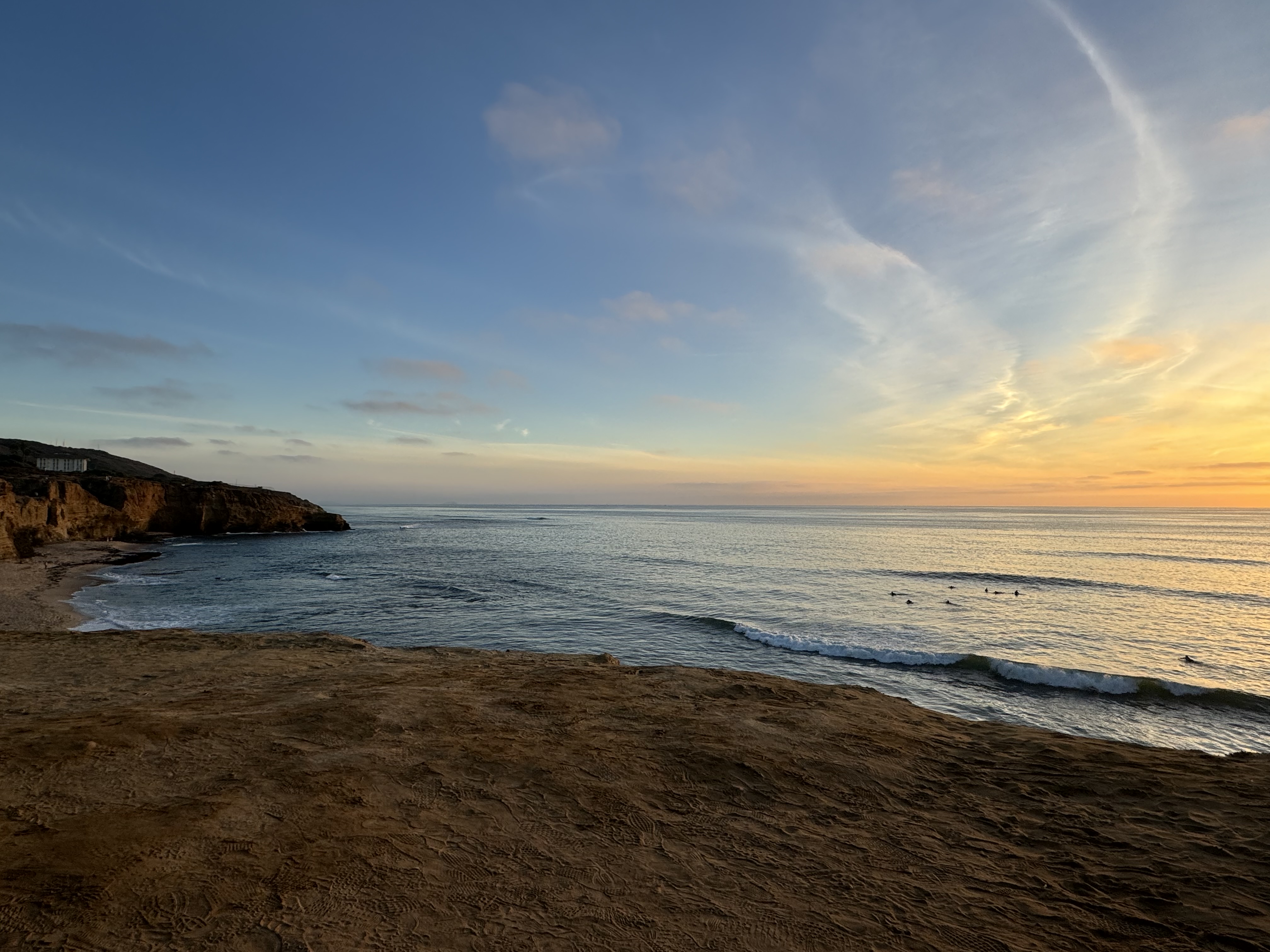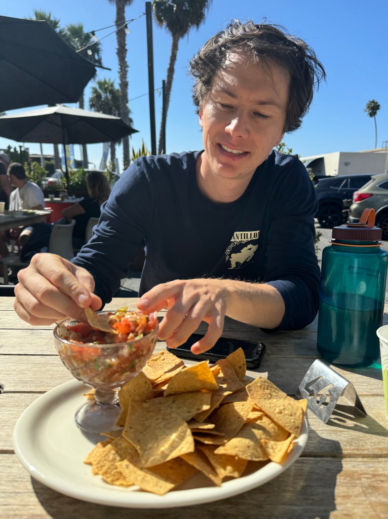 For a beer break, we drove down to Sunset Cliffs Natural Park to see the sunset over the Pacific Ocean. The drive itself was beautiful, and we wound our way up the road, passing multi-million dollar homes to the left, and surfer vans to the right with their owners hitting the waves. We found a spot on the side, and brought down our chairs (nice Airbnb amenity) to our selected viewpoint. It was beautiful to watch the surfers in the water as the sun set, and look up and down along the coast. After sitting for a bit after the sun went down, we went back to Ocean Beach to get dinner at Mike’s Taco Club (California burrito is a must).