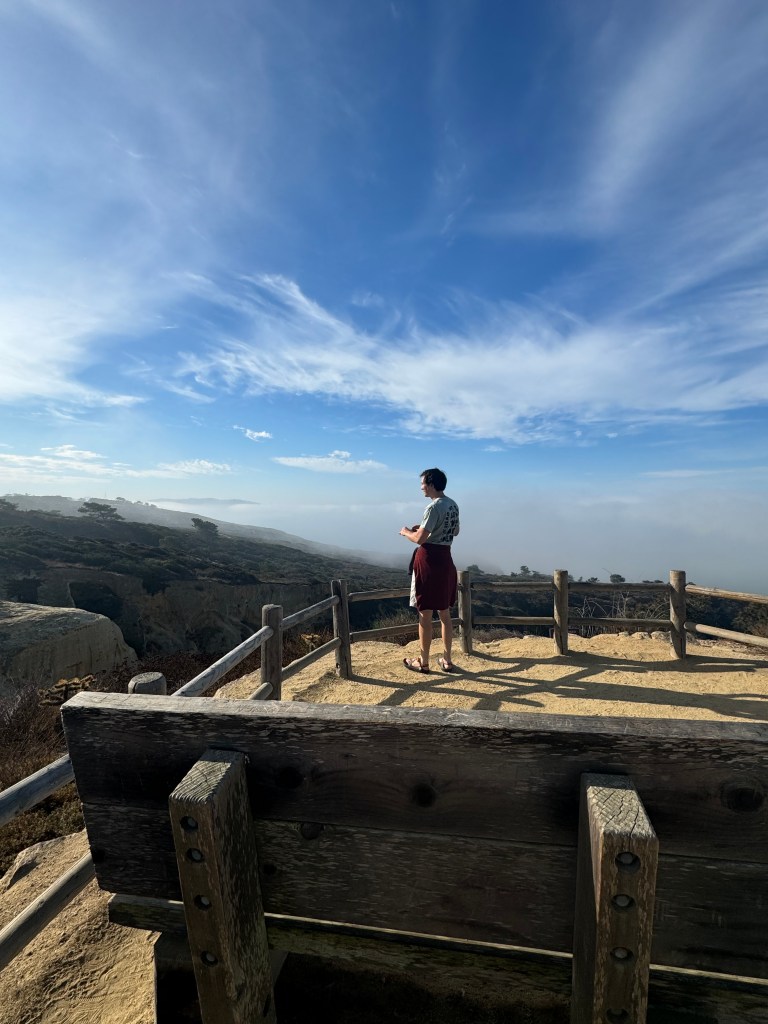 Our flight was around 2PM today, so we didn’t have too much time to spend exploring. Our plan today was to drive up to Torrey Pines State Reserve South Beach and do a lil nature trail along the beach. Nothing too strenuous, but it was nice to stretch our legs (and burn off some of the excess food we had eaten the previous day). We saw some nice wildlife (various birds) and plants; the trail wound up along the side of a road, then popped out on the shore and we walked back to our car along the beach.
