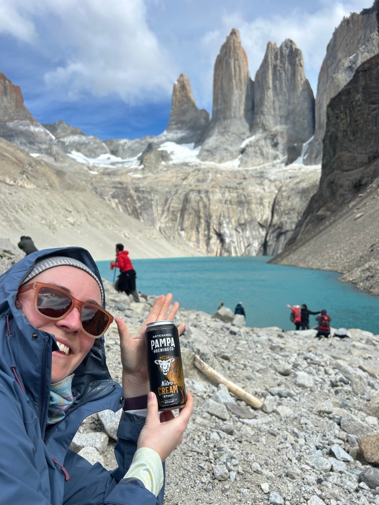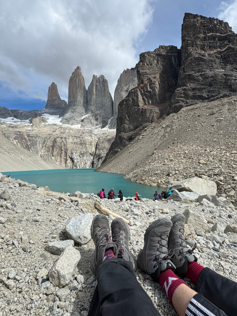 Ultimately around noon, we made it to the summit after the final steep (and busy) ascent. Just like that, we were met with the Torres del Paine, or “towers of blue”. The three towers, all distinct 8,000 foot peaks of glacially-carved granite, stand tall over the supremely turquoise-colored, snow-fed lake at their base. What a view – this is what will live in our minds when we reflect back on our time in Torres del Paine.