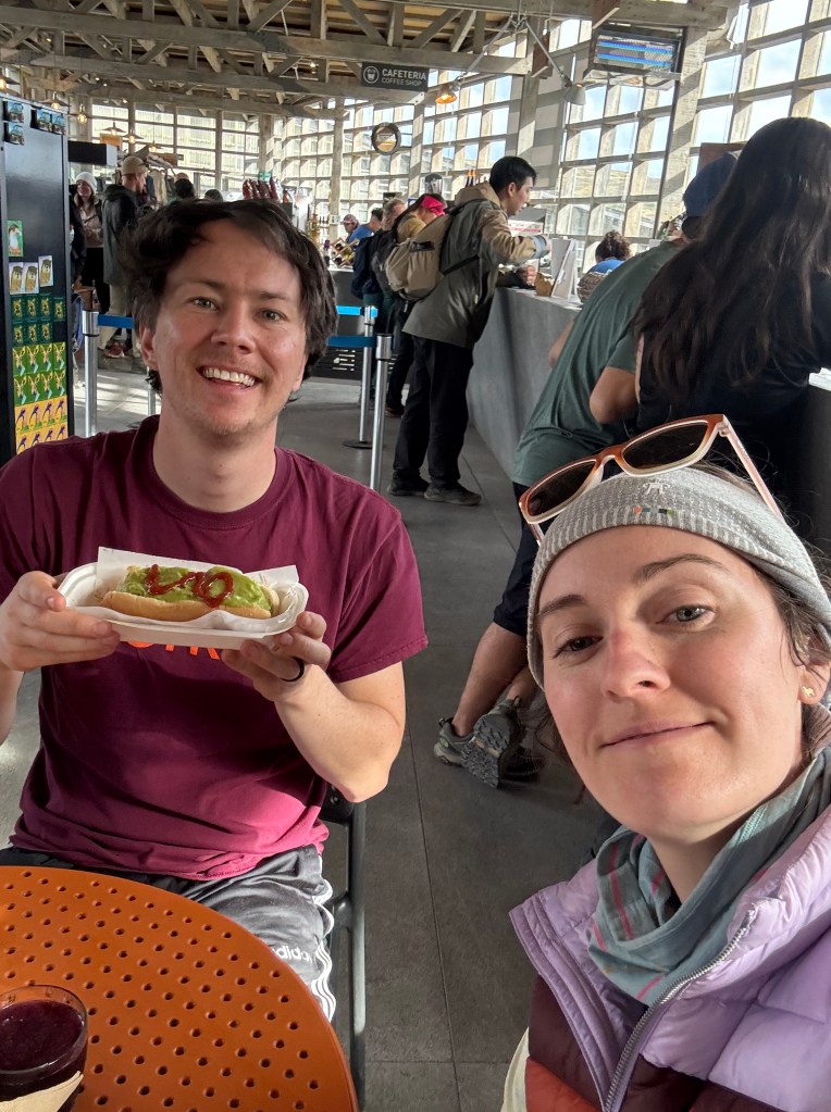 The top unfortunately didn’t have as much space to spread out as the Chaltén hikes, so it was a little more crowded, and a lot more windy. We found a nice and cozy spot nestled between some boulders, and reveled in the fact that we did another 15+ mile hike. Making sandwiches with the last of our PB&J supplies, as well as another tuna sandwich, we sat for a bit, watching others taking their “I’ll Never Forget this Moment” pictures. After taking some of our own, we began the trek down. The descent definitely caused the hike to drop on my list of ‘best hikes we’ve ever done’ – there were SO many people trying to get down, and so many traffic jams on the way down (pet peeve: when people have no self awareness on a trail and don’t realize they’re blocking traffic). After a long wind down, we finally made it down around 4:30PM. At this point, we had hit our limit from all the hiking – we were dragging our bodies just to make it back to the welcome center, with fatigue of the body really setting in.