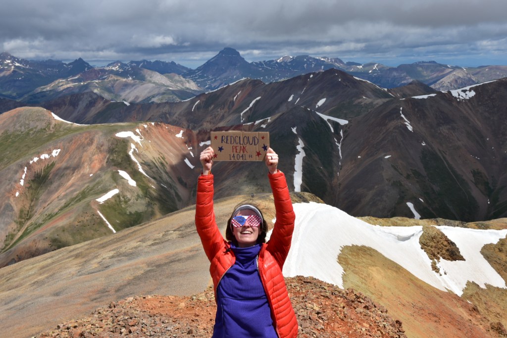 My half-assed Peloton cycling did not prepare me for what came next! It was a grueling, slow, beautiful and quiet ascent. We took a breather at the first saddle, then scrambled, quite literally, up the hill to the false summit. Another five minutes, and we were at the top of Redcloud Peak!