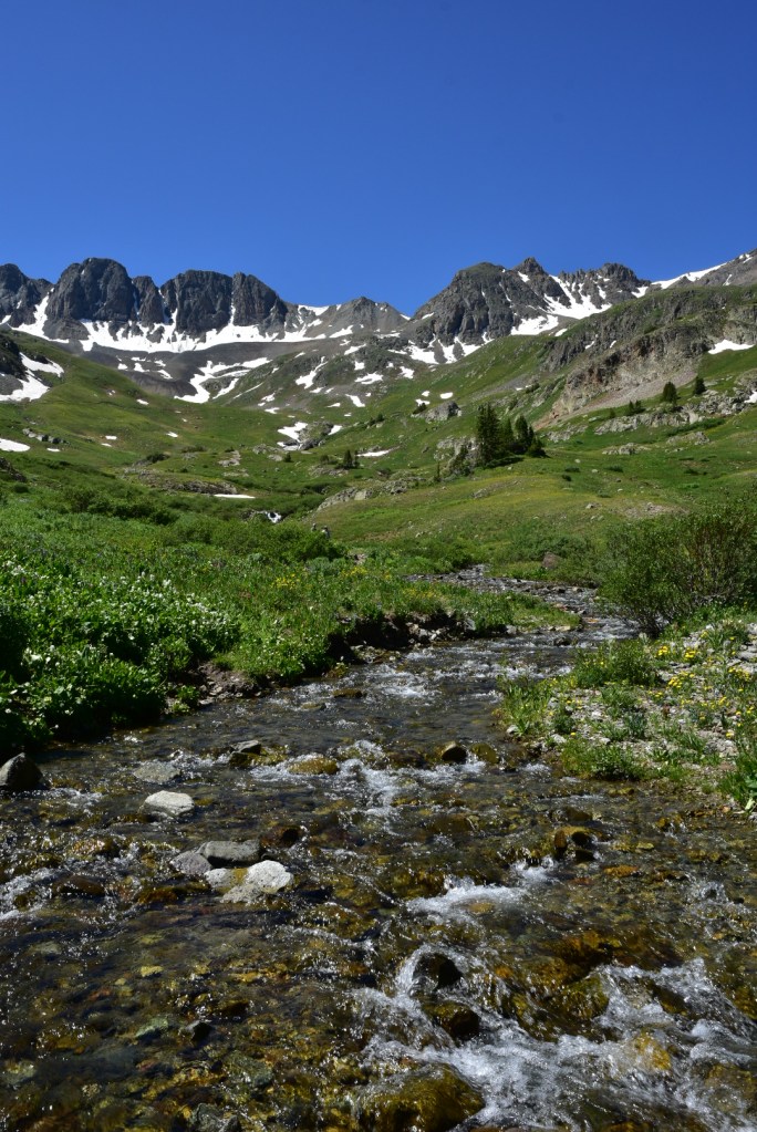 - American Basin: a high-alpine basin surrounded my mountains and peppered with a plethora of vibrant wildflowers. Our legs were too sore from the day before, but there’s a trailhead to do another 14er summit