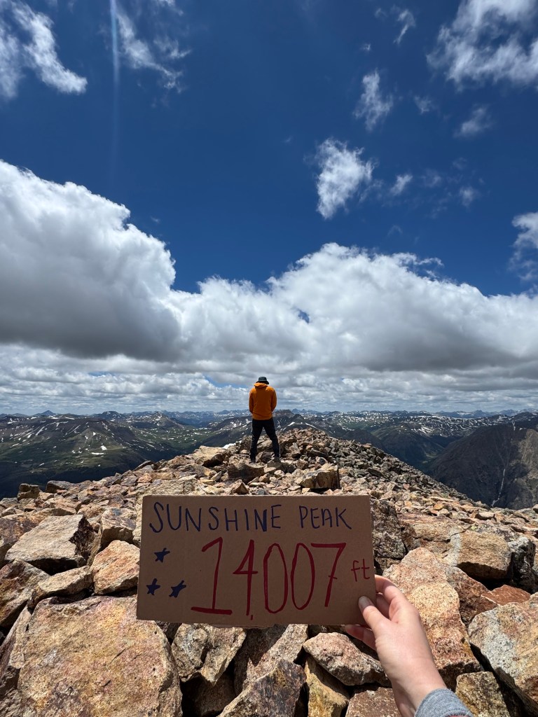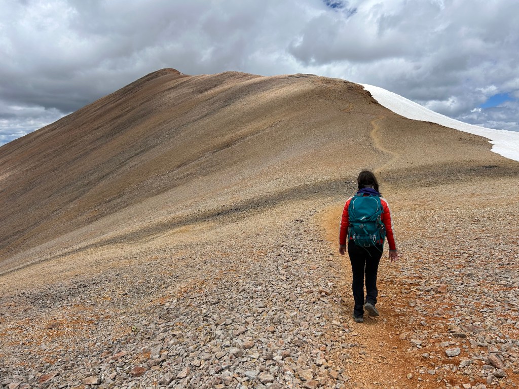 After refueling with snacks and taking a #scenicsammie picture, we had a choice to make. We could hike to another 14er – Sunshine – but it would add 1,000 more feet of elevation (500 feet down and up a saddle, then back over to Redcloud). We were on the fence but figured why not – how cool would it be to say we hiked two 14ers in one day?!
