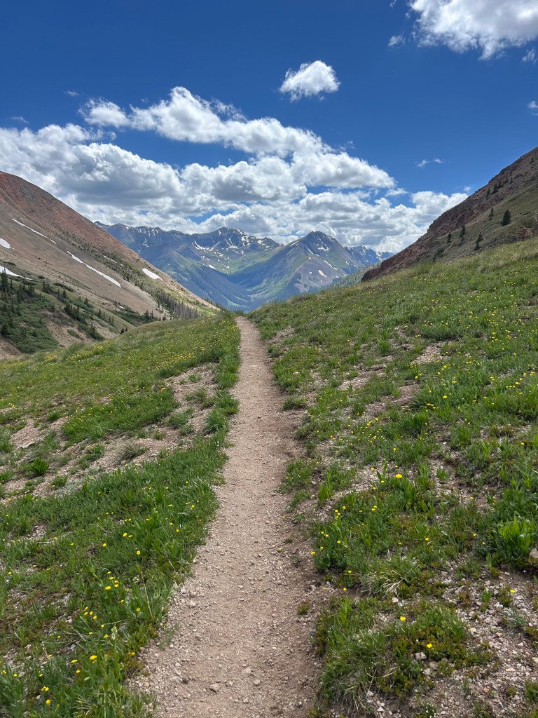 Rise and shine! We have a fourteener to climb! I haven’t hiked one since September 2019 and felt a bit apprehensive, but was really excited that we were hiking one in the San Juans. The mountains in this part of the state are just spectacular with their alpine tundra, residual snow caps in the summer, and abundant wildlife and wildflowers. The trailhead was 45 minutes from town, along part of the Alpine Loop that we’d be traversing again the following day.