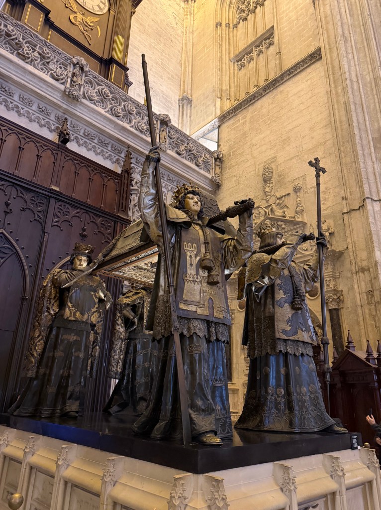 After sleeping in a bit, we met Taylor at Plaza de Espana for a stroll before our noon tour at the Catedral de Seville. This was about a fifteen minute walk from the old town, and by this point we’d walked a fair chunk of Seville. Plaza de Espana is yes, a famous plaza, built in 1928 for the Ibero-American exposition. There are tiled alcoves around the entire semi-circle of the building that represent the various provinces of Spain.