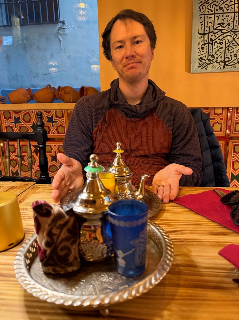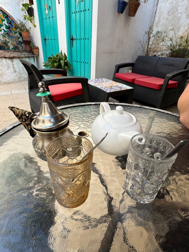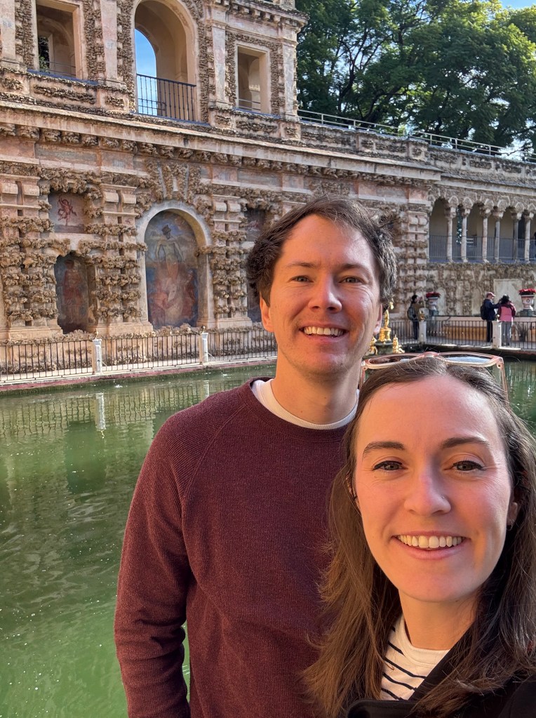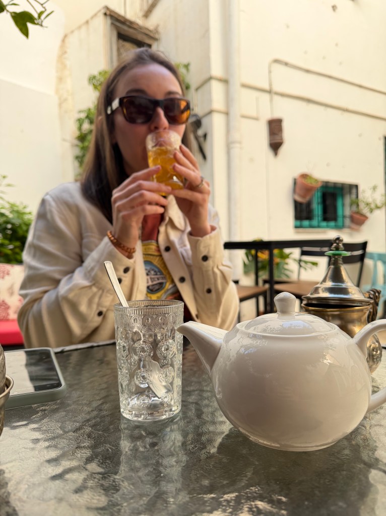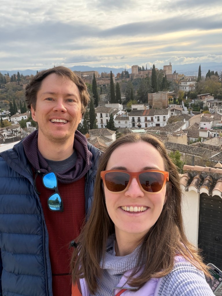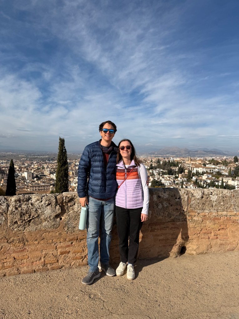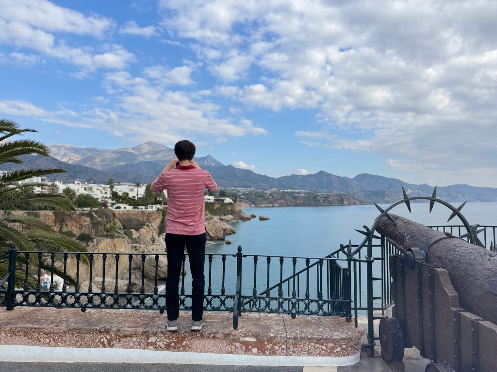Today was a little slower paced, as we had most of the day to mosey up to Granada where we’d sync up with Taylor again. We started the day on the Mediterranean Coast – from Málaga, we drove a short distance to the town of Nerja, primarily to visit the Balcony of Europe, a gorgeous viewpoint overlooking the Mediterranean Sea. But first, breakfast. We went to Tetaría Zaidín, a lovely Moroccan teahouse where we had delicious looseleaf tea, a crepe and avocado toast. At this point in the trip, I was feeling fairly confident in my practiced Spanish and enjoyed ordering and talking to our waiter. After a delicious meal, we walked to the Balcón de Europa, where we got beautiful views of the water. One of Jared’s goals of this trip was to touch the Mediterranean, so we walked down to the beach and he got to stick his feet in (I settled for a finger) – there were even some locals swimming in the water! I wish we’d had more time to explore Nerja with its white-washed streets and beach vibes.