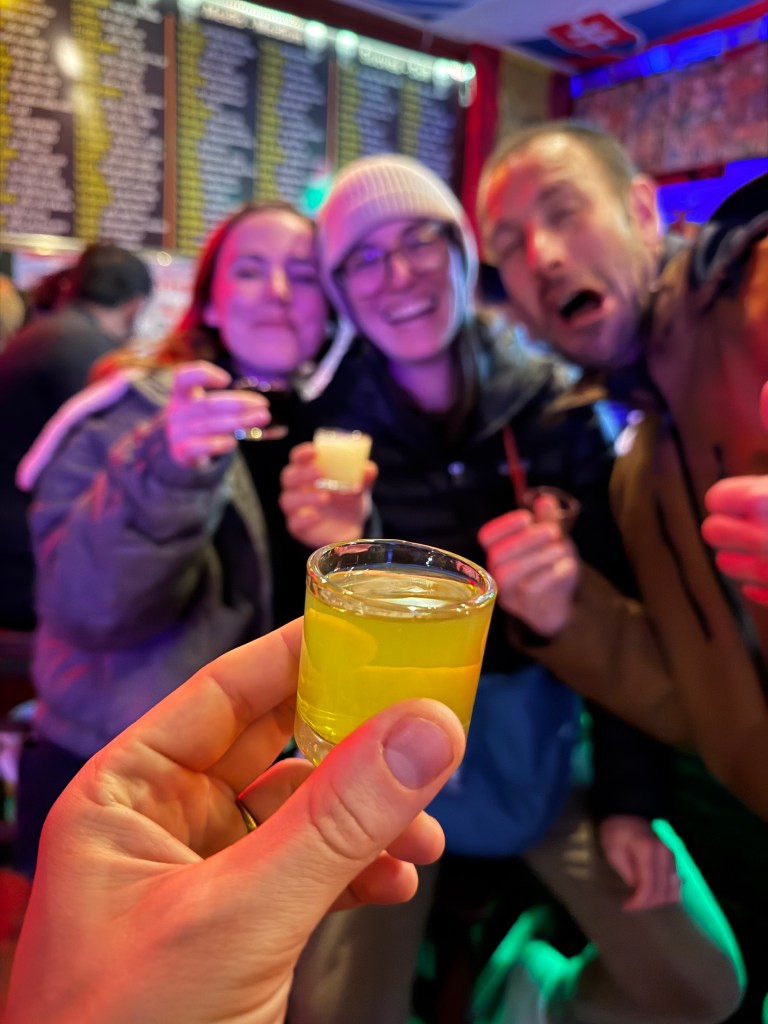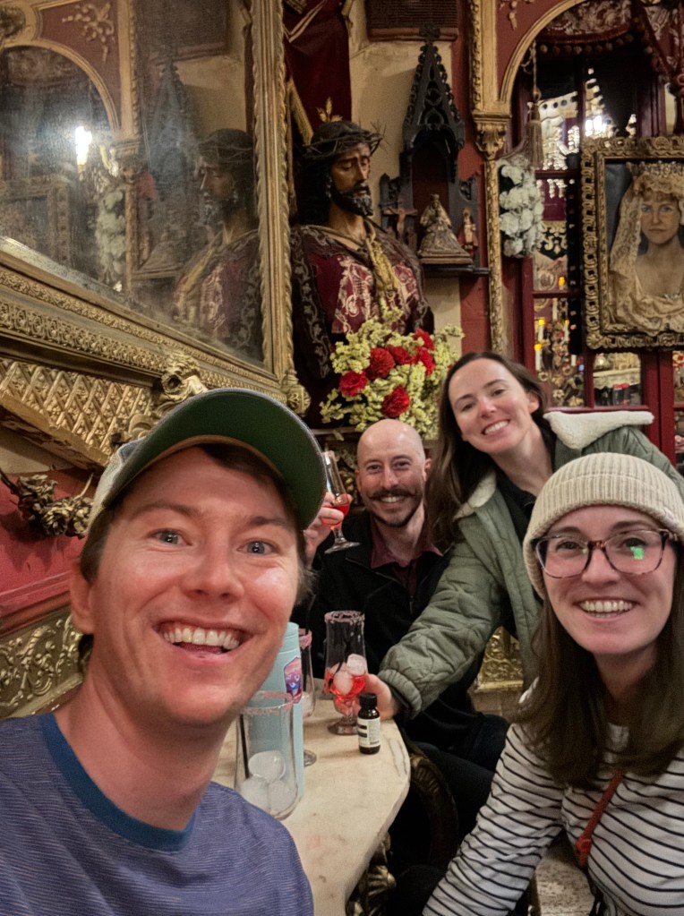 The three of us asked him for bar recommendations and he told us Garlochi, a quirky bar decked out with Roman Catholic oddities and where the signature drink is “The Blood of Christ”. At the same time, our good college friend Taylor arrived in Seville (yes, this was planned) and met us here for a few more drinks to cap out the night! While Seville was super crowded during the day, we had the streets to ourselves as we walked past the cathedral at 1AM.