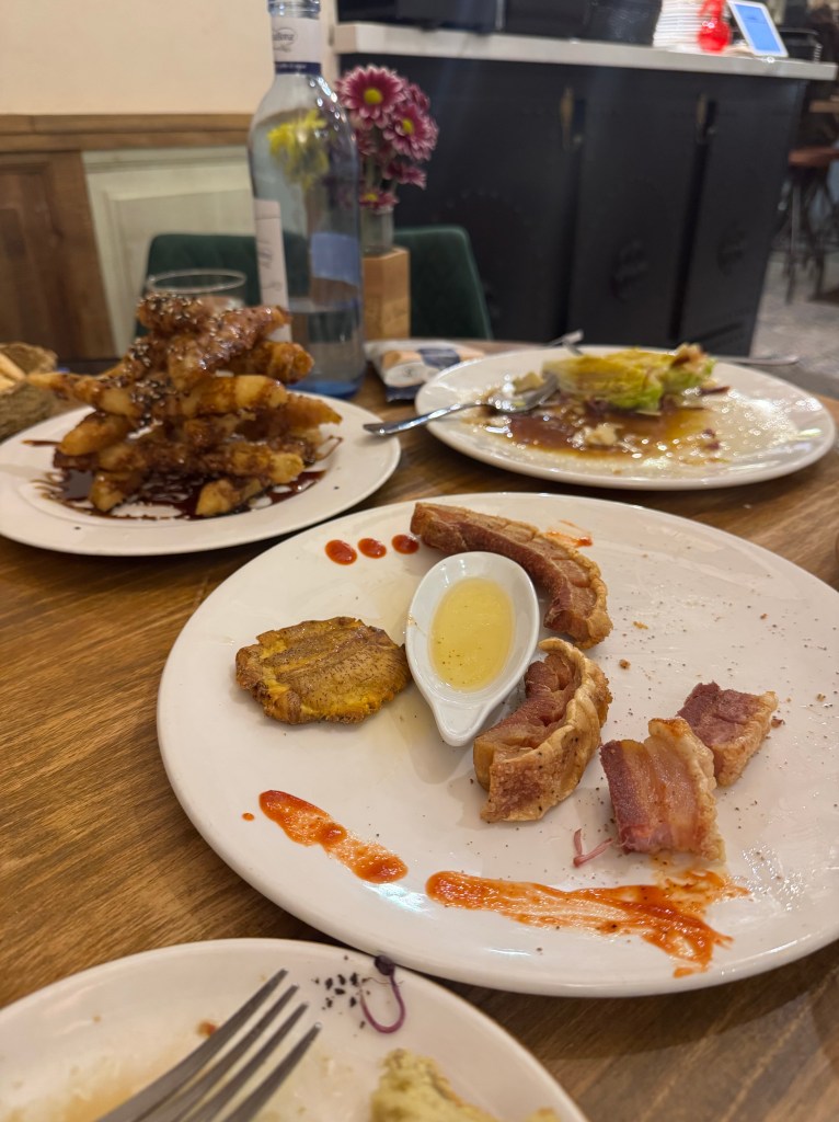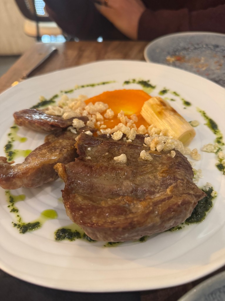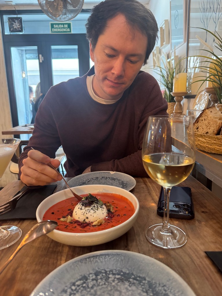 It just happened that one of the tapas restaurants (Vuela) I’d saved had a spot for two and we were promptly set! And thus began our long journey of delicious Spanish food (yes, Portuguese food was tasty but Spain opened its doors and our mouths to otherworldly meals). The tapas here were fairly modern – we got a delicious burrata bowl (tomatoes blended with pomegranates, beets and passionfruit), some Iberian pork, and other delicious shareable plates.