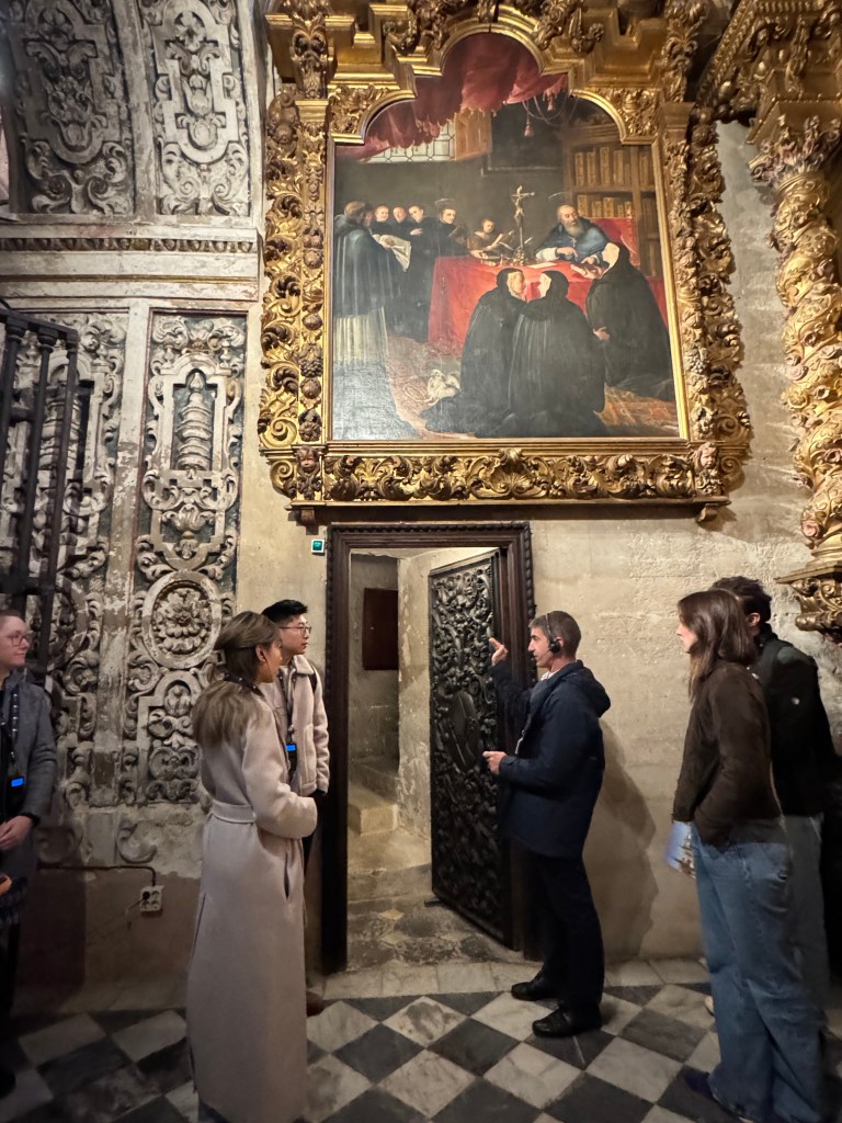 Our next step took us to Escalona, where we got to learn more about Spanish wine – there are 72 protected wine regions in Spain! For food, we tried a potato and egg tortilla, fried dogfish (shark), and aged tuna with almonds and olive oil. (Random fun fact we learned at this bar – Seville has the second largest old town in the world).