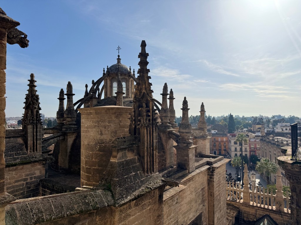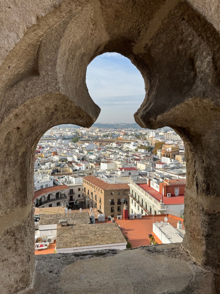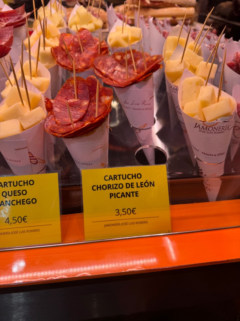 After summiting the highest points of the cathedral, we ended the tour in the main level, and walked around for a bit, even getting to see the final resting place of Christopher Columbus (or at least parts of him). Pressed for time and quite hungry, we walked to Triana Market for lunch where we got a delicious ham and cheese sandwich, and some cones of meat and cheese (my dream). Fueled up with food and one last delicious Christmas Latte from Syra Coffee, we went to the hotel, got our bags, and walked ~20 minutes to the Seville train station (not our best decision with all our luggage), to get our rental car and drive to Ronda.