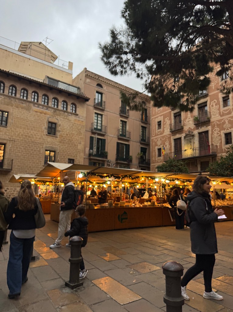 Sad – this was our last full day of the trip, but we had a good amount of activities planned! The day started with a free walking tour of the old section of the city (Gothic Quarter and Borne). We met out front of the Barcelona Cathedral, where there happened to be a huge Christmas market right outside in the square.